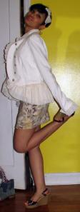 At the Free People sample sale there were a lot of cute pieces but I fell in love with this Military ruffle jacket (only $37.00), perfect for Spring! There was a cute abstract print dress ($17.00) that matched it perfectly. Once, I got home I looked through my headbands and found a Free People one I never wore and it completed the whole look…:)