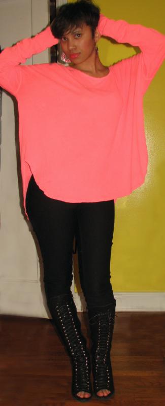 Next, I found this neon coral pink half moon tee for only $15.00. It’s so comfy, soft and chic. I adore this top and it’s uneven hem. You can wear it with anything…