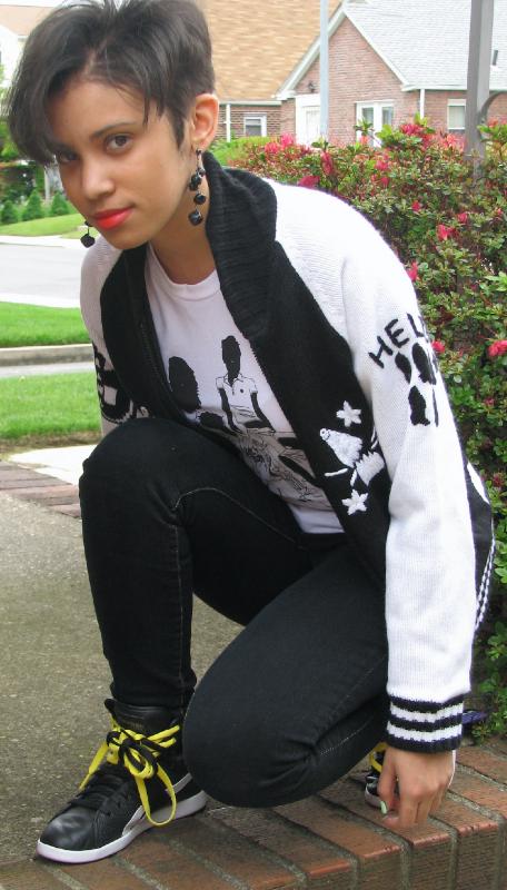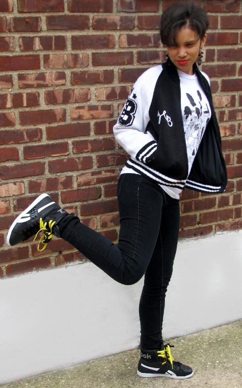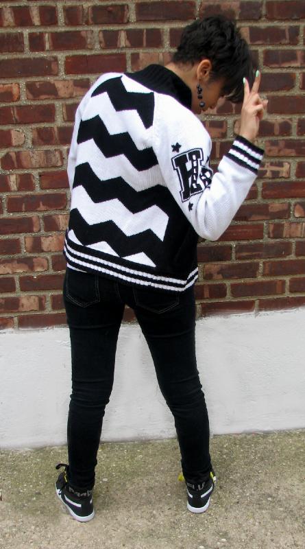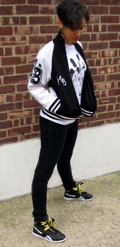 Third, is the model’s tee. I looooove this tee shirt it has models by number…match the model’s silhouette with the number and list of names below.The tee has Kate Moss, Omahyra and Bettie Page screen-printed on it! I purposely bought it to match my HELLZ kicks I posted about here and the Hellz cardi sweater jacket. Tee cost $14.99
