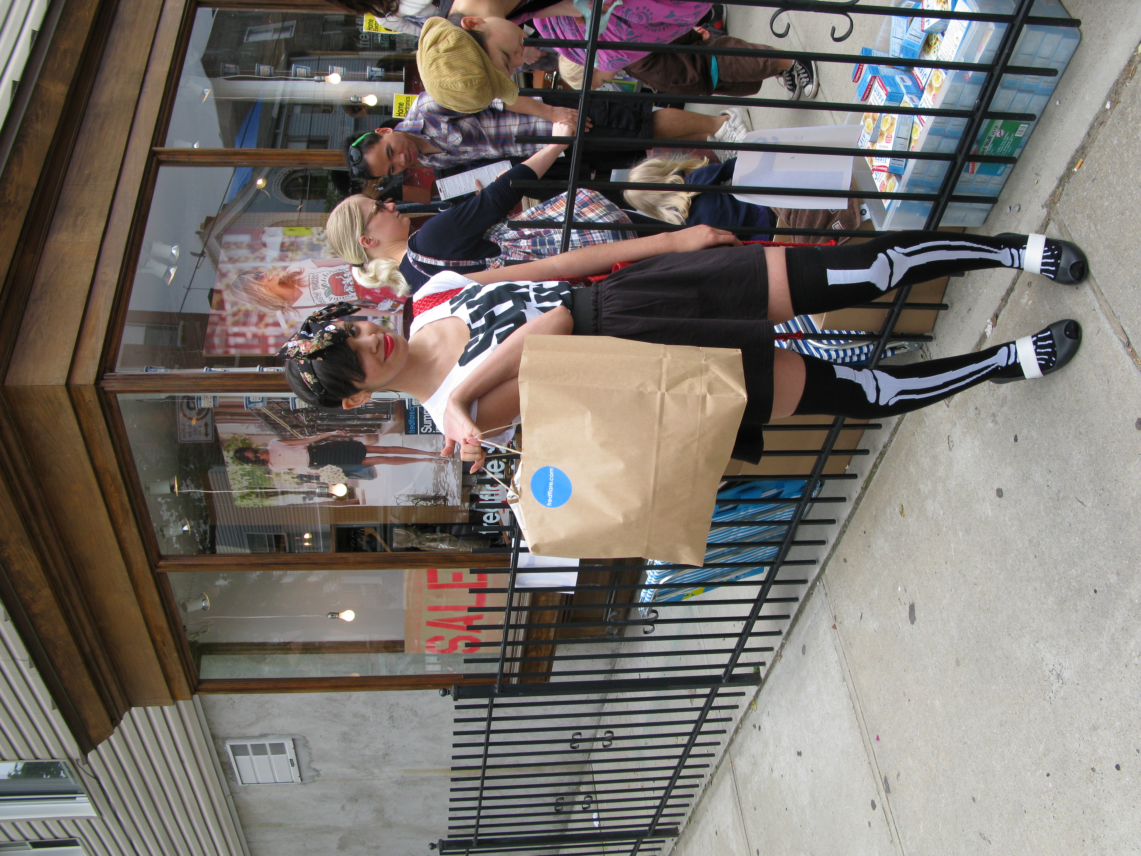 This past sunday, we trotted over to the Fred Flare sample sale! We didn’t post to tell you guys about it because we weren’t sure we were going to go but YIPPIEeeeeeeEEeee we are so glad we did!!!!! We got great baHgains! It was $10.00 for clothing and $5.00 for bags!!!