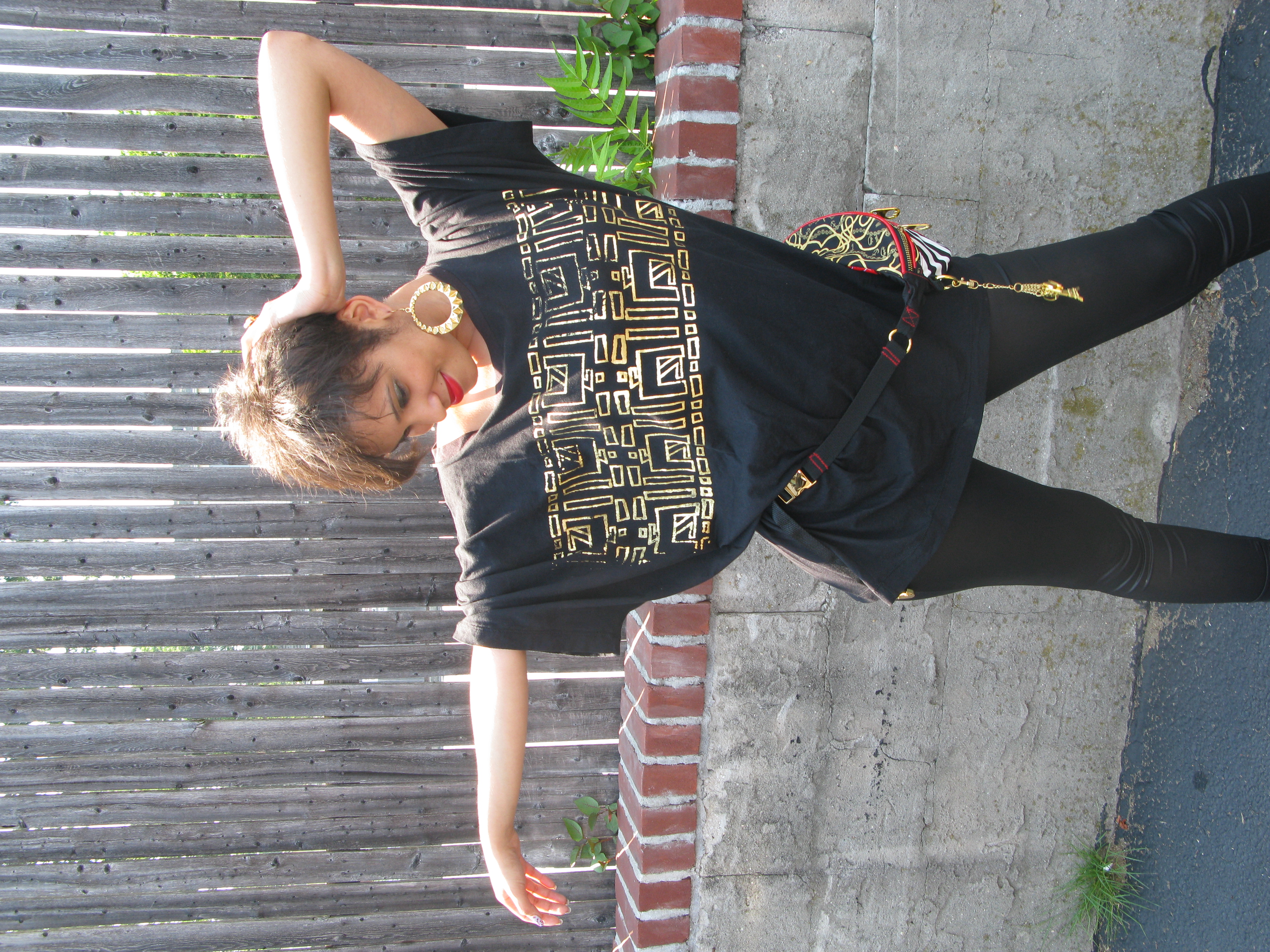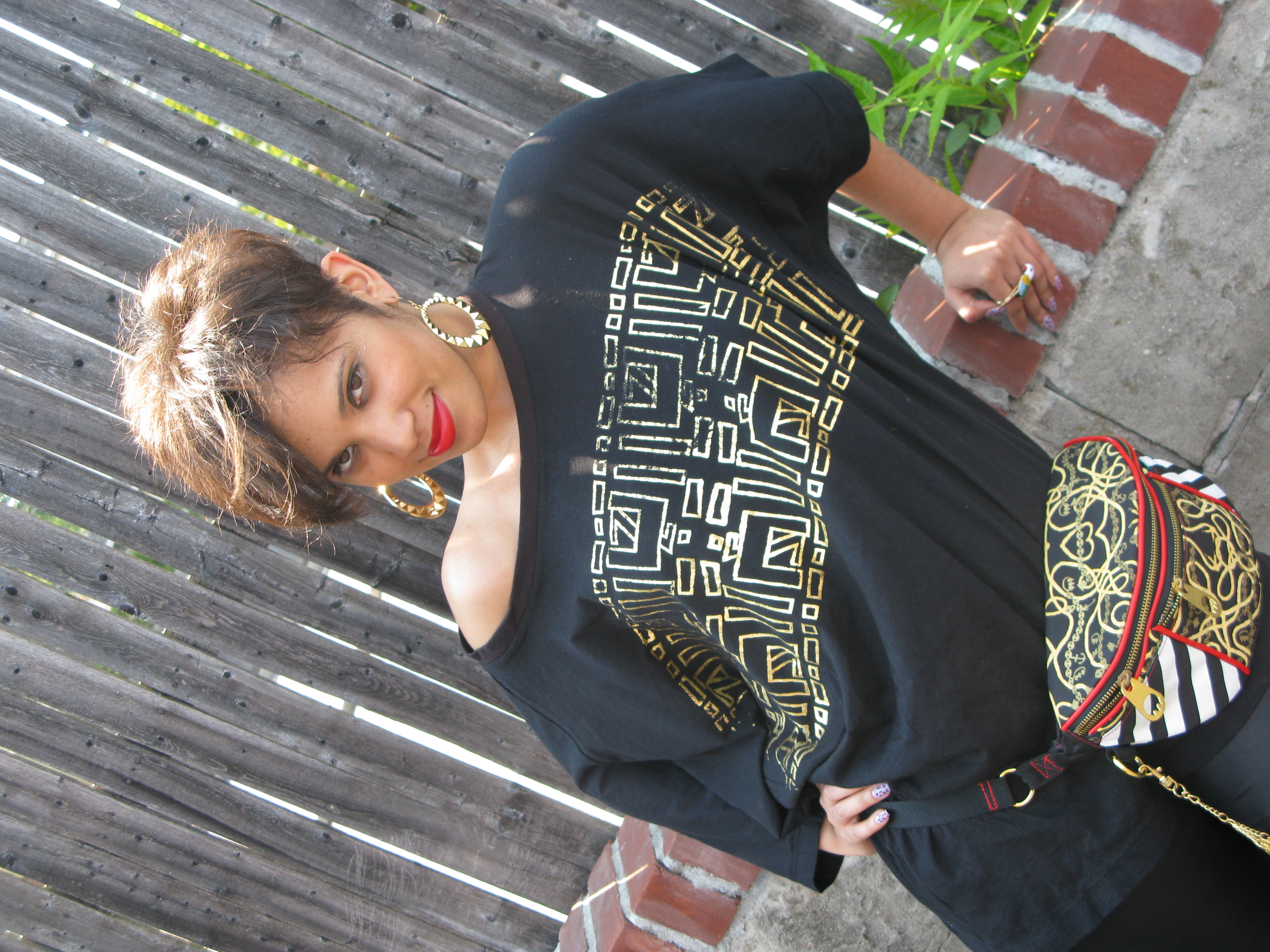 Ms. Mari from UZI NYC sent me one of their Bat Wing Tees!!! I’m in love! It’s so funky, comfortable and sexy! I love the loose fit so I can wear it off the shoulders. It can be easily dressed up with a fancy belt and pumps or worn casually with leggings and flats. The bright metallic gold abstract screen-print is certainly my flava! The UZI Bat Wing top is not your average tee. UZI evolved the basic screen printed tee by making it modern & fresh with a bat sleeve. It drapes well and is flattering for every body type. As soon I received it in the mail I snatched it up and paired it with my Claw Money fanny pack! This tee is a must have for your closet. Thank you Mari for this delightful gift I will wear it with style and pride! š