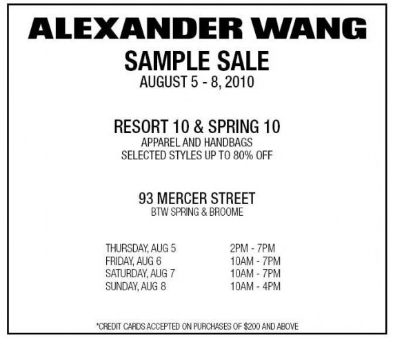 AHHHHH I DIE! One of my favorite designers, Alexander Wang, is having a sample sale in Soho. This is going to be nuts but well worth it as prices will be up to 80% off!