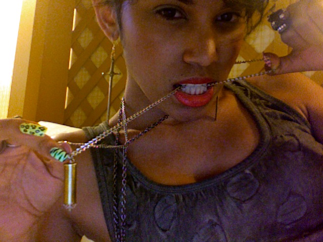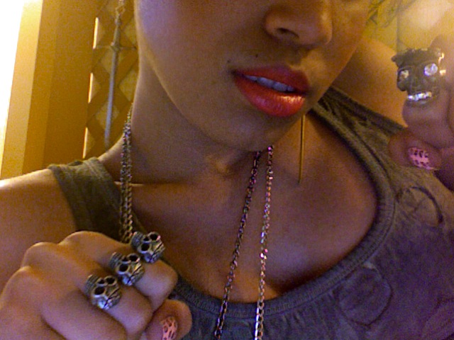 Today I went to the Melrose Trading Post Flea Market and found some really funky unique items! I’m about to head out but I had to share with you some of the goodies I found. Look @ these sword earrings, the two skull rings and this bullet chain with a pretty crystal!!! SO SPIKES! I’ll be back later to post all the details about the amazing artists that made these lovely pieces..I’m so excited I had to wear it ASAP!!!!