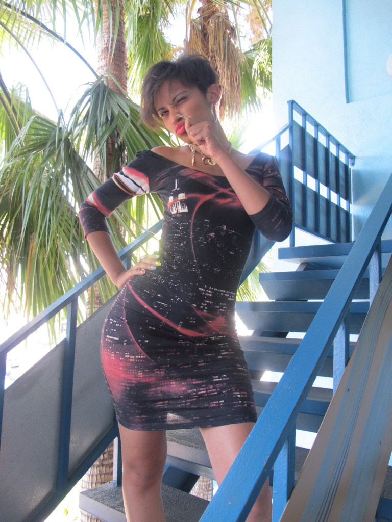 August 29, 2010 LA Outfit-6 Outfit deets: Dress from Motel, Handcuffs & Shoot em up necklace from a cute boutique in LA called Timeless, and Sunglasses from Buffalo Exchange in LA Share this: Click to share on Facebook (Opens in new window) Facebook Click to share on X (Opens in new window) X Like Loading... Related