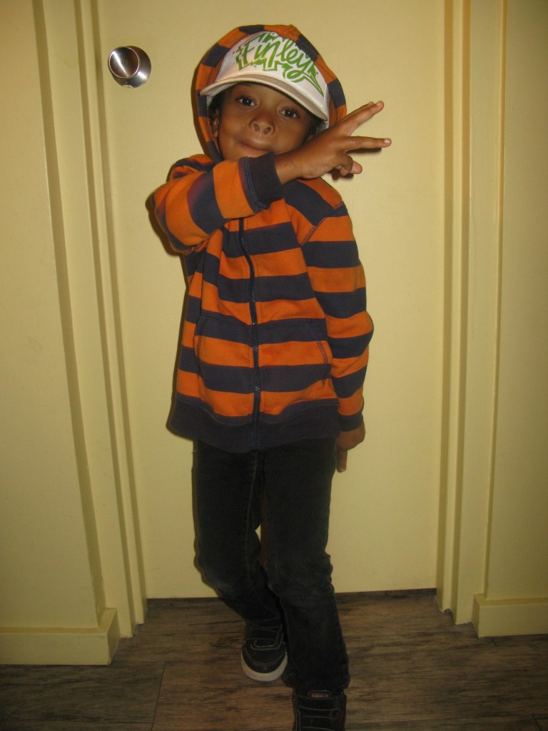 August 29, 2010August 29, 2010 Mr. Rudy’s Outfit Post Finley aka Mr. Rudy is my stylish 4 year old nephew from LA. He’s a pint size B-boy. I liked his outfit so much I had to post about it. He’s too kool!! He has a hat with his name on it! He likes breakin’ Spikes 😉 Share this: Click to share on Facebook (Opens in new window) Facebook Click to share on X (Opens in new window) X Like Loading... Related