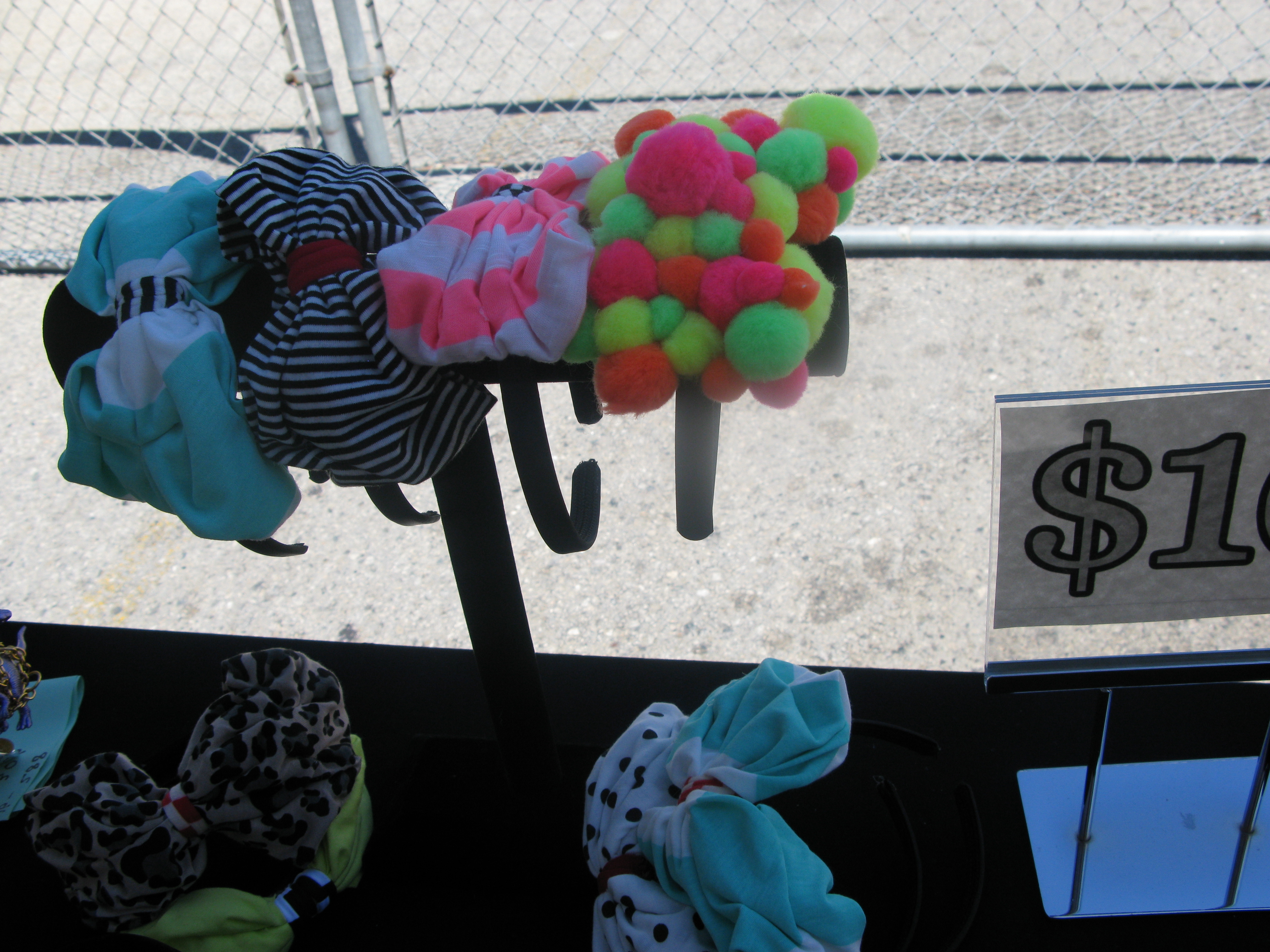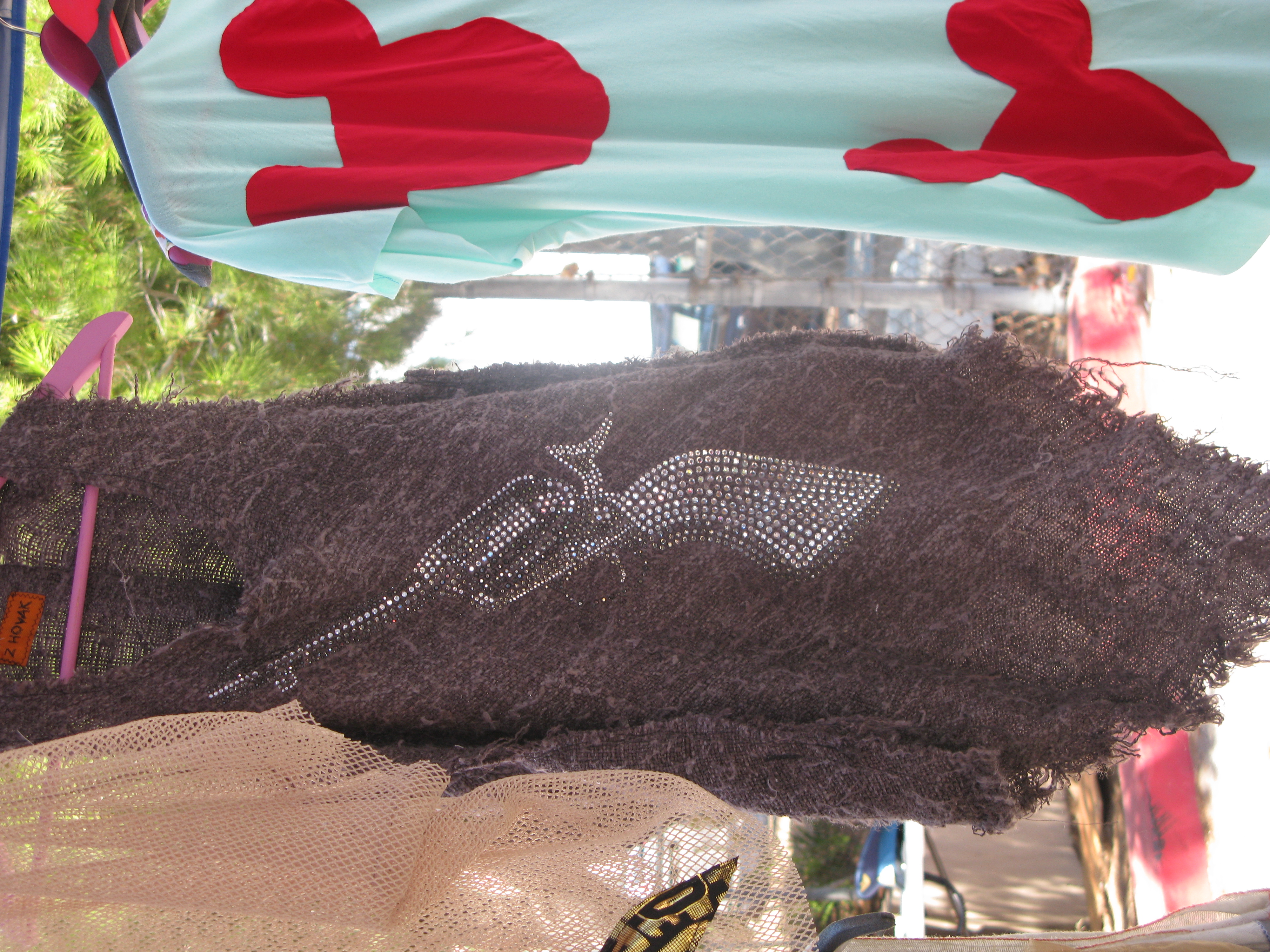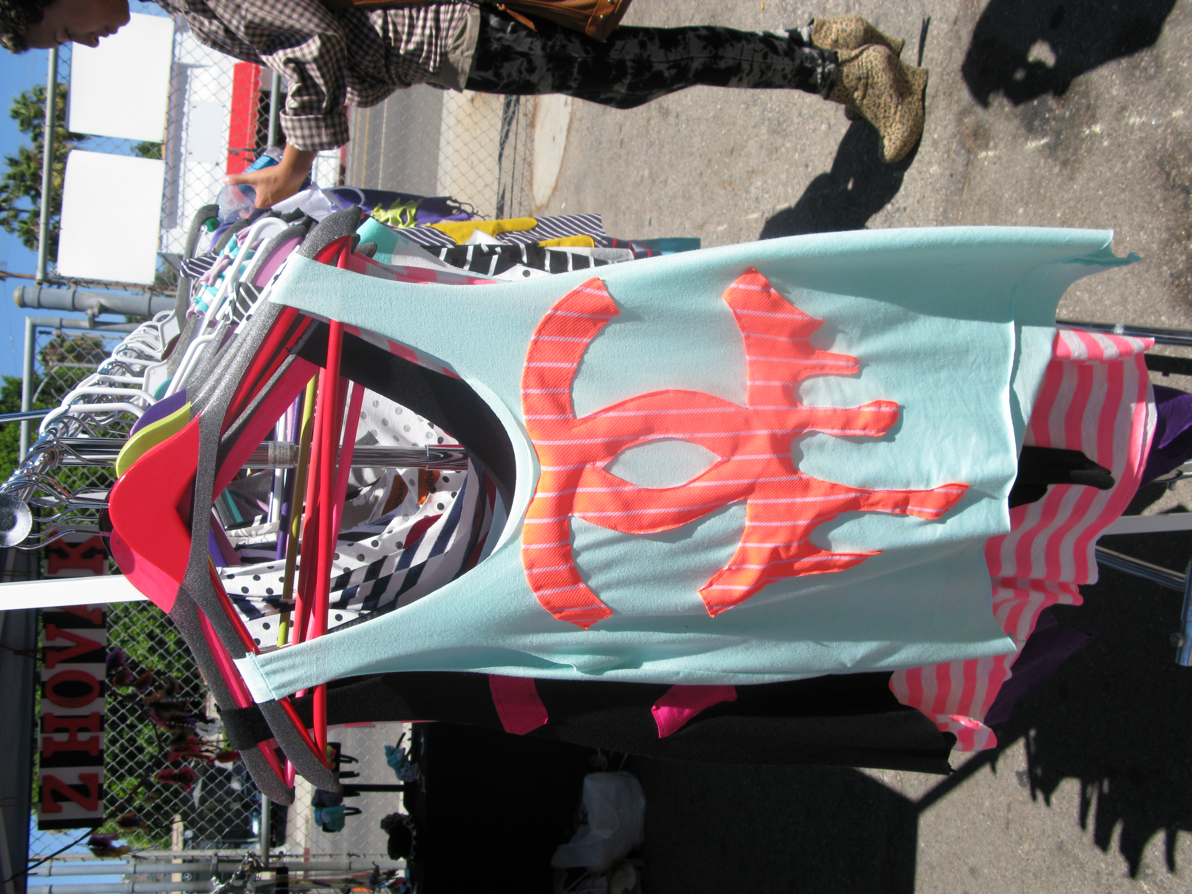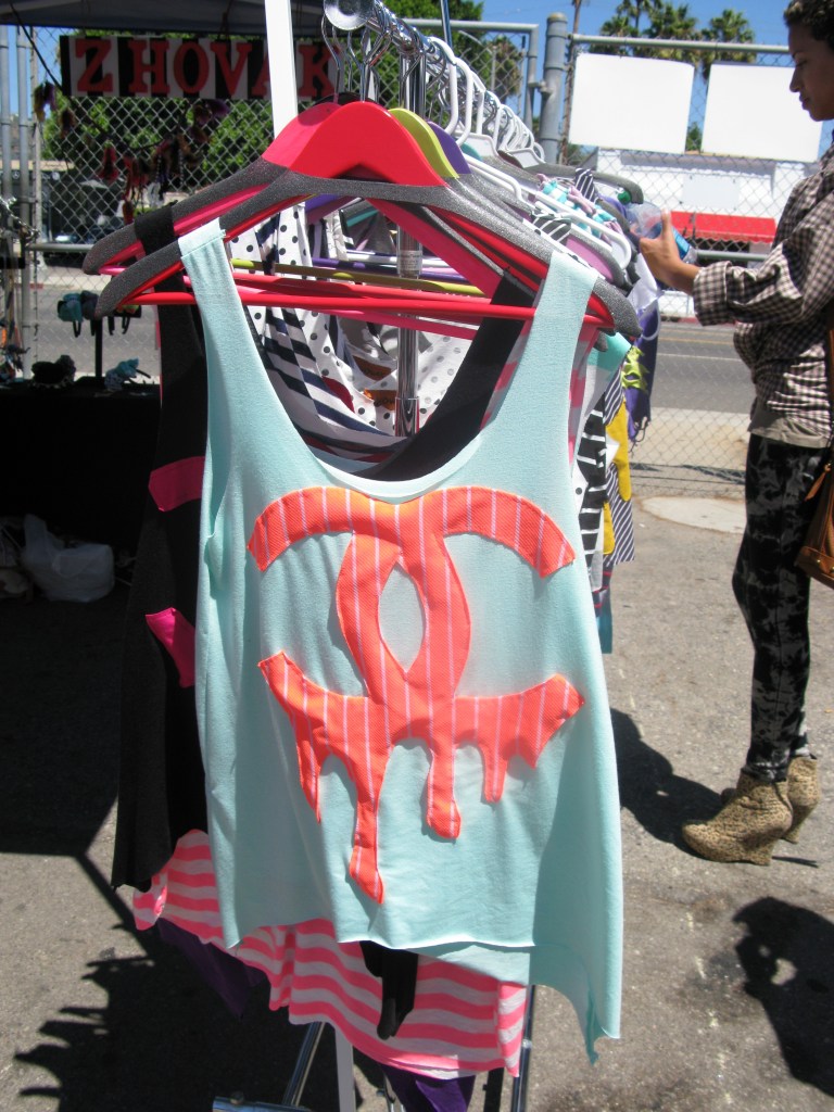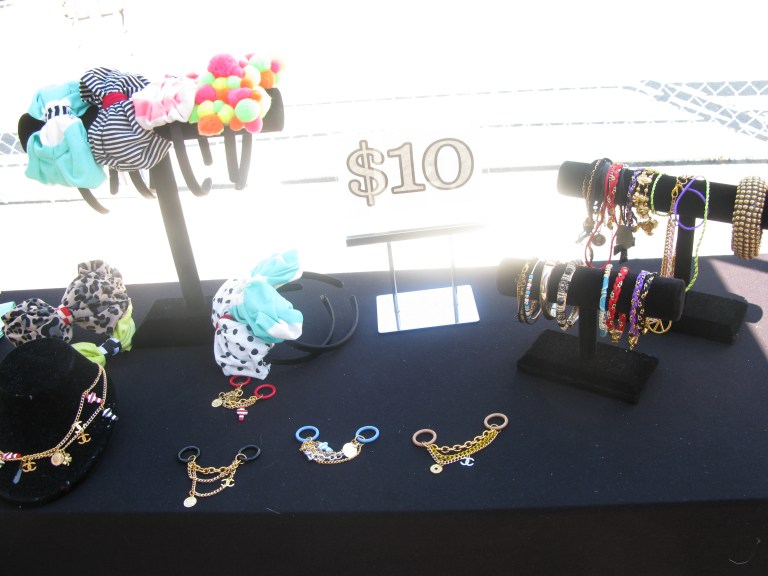 As I browsed the flea market I spotted a tent of sunshine! The Z HOVAK tent is filled with eye catching bright colors, stripes, feathers, chains, polk dots and funky animal prints! It’s like walking into a candy store 🙂 She makes tees, tanks, jewelry, keychains, headbands and mucho more. You name it…she makes it!