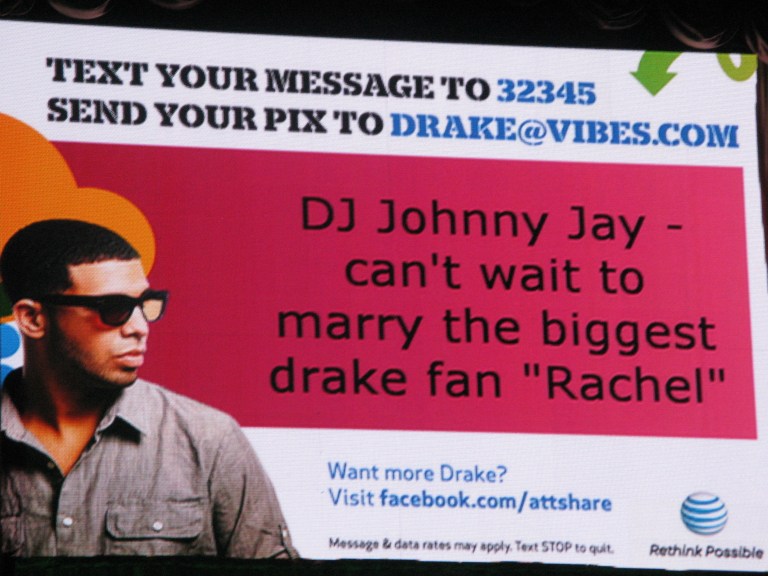During the concert they made it available so that you could text Drake a message and it would appear on the screen…