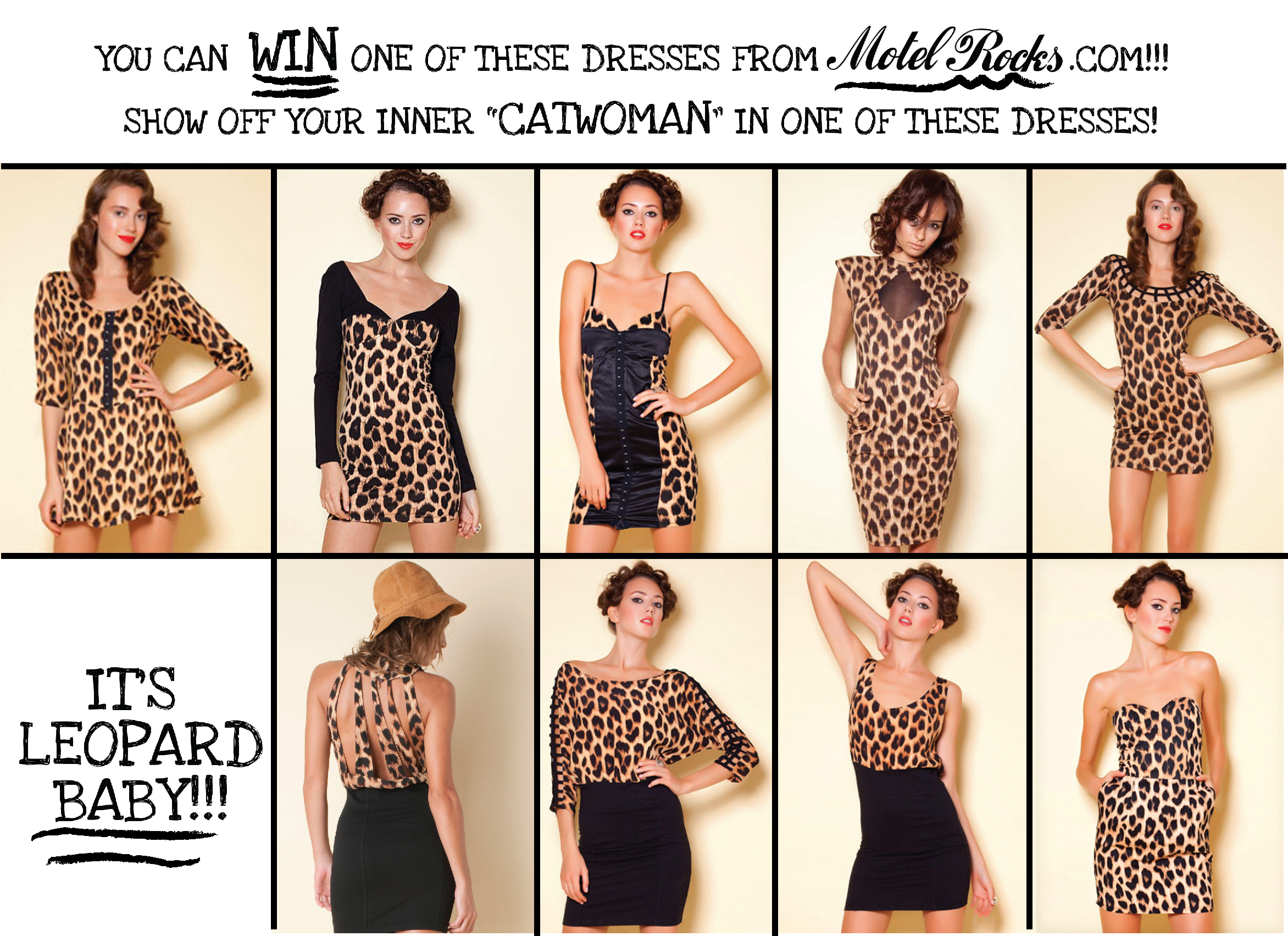 Halloween is one of my favorite holidays because I really get a kick out of people’s creativity, and ingenuity in making their costumes! That’s why I want YOU to send in a photograph wearing your Halloween Costume and you can have the chance to WIN one of these fabulous leopard dresses from MotelRocks.com!!!