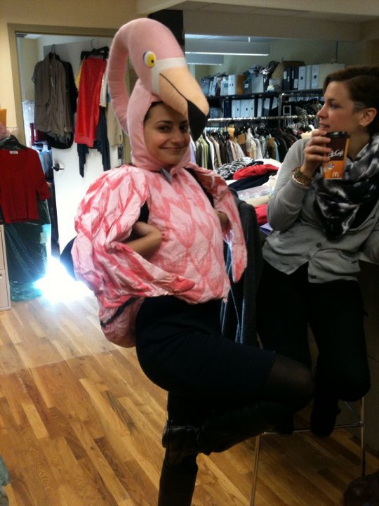 “My Flamingo costume was originally a kids costume that my friend got for $8 from a thrift store in Pennsylvania. I reworked it by cutting out the crotch and sewing on jewels & feathers. Then I came across a hot pink wig that matched it perfectly!” “-Caroline