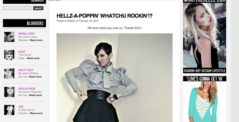My fierce Hellz outfit has made it onto Hellz’ blog! Whoo hoo! I’m today’s “HELLZ-A-POPPIN’ WHATCHU ROCKIN’”!