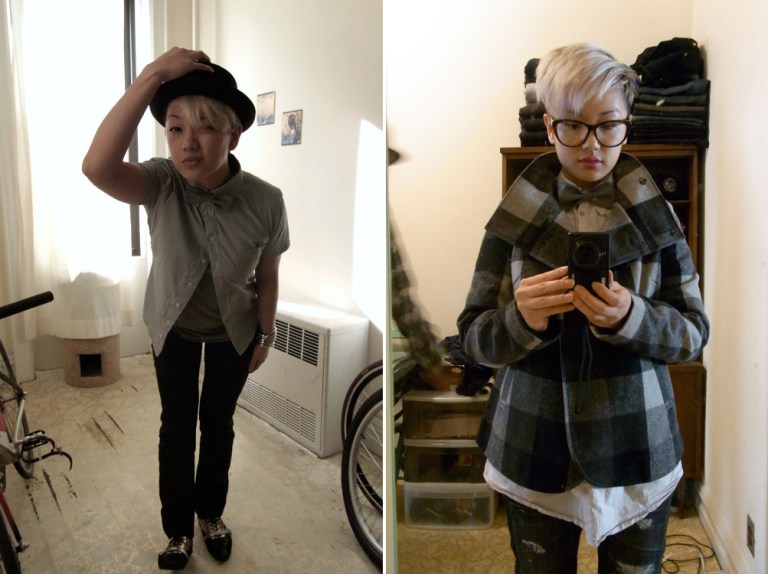 “My outfit(s) are men inspired because i tried to embody my inner charlie chaplin =) love love love bow-ties and bowler hats!”-Yoshi