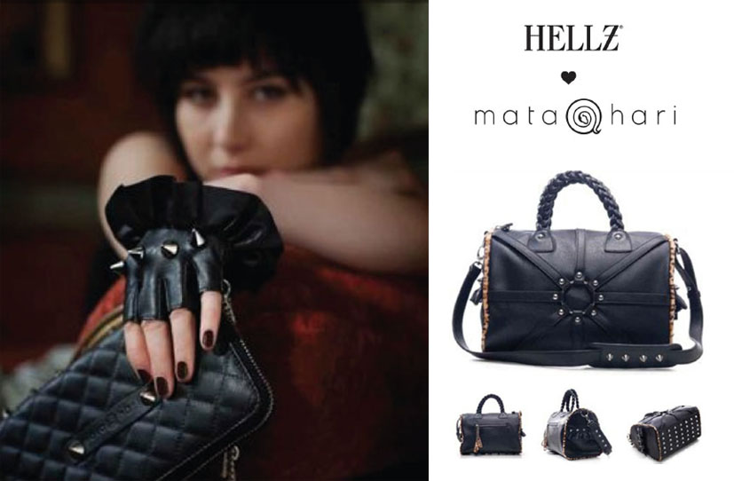 “This Spring, women’s apparel label HELLZ introduces the brands expansion by collaborating with luxury handbag line, Mata hari. The collaboration features a collection of three handbags made of high quality leather in bold sleek bodies. Within the collection is the bucket bag featuring stainless steel cone studs along the bottom, the quilted clutch-wallet with a studded detachable glove, and the bondage inspired satchel.
