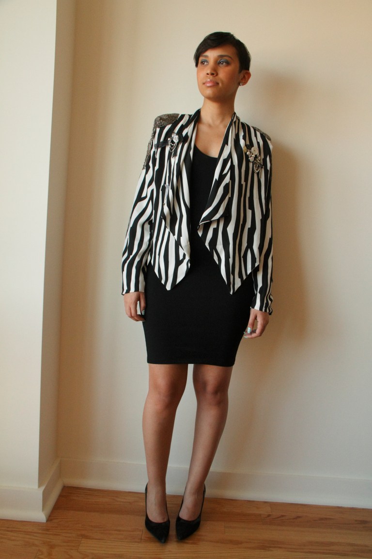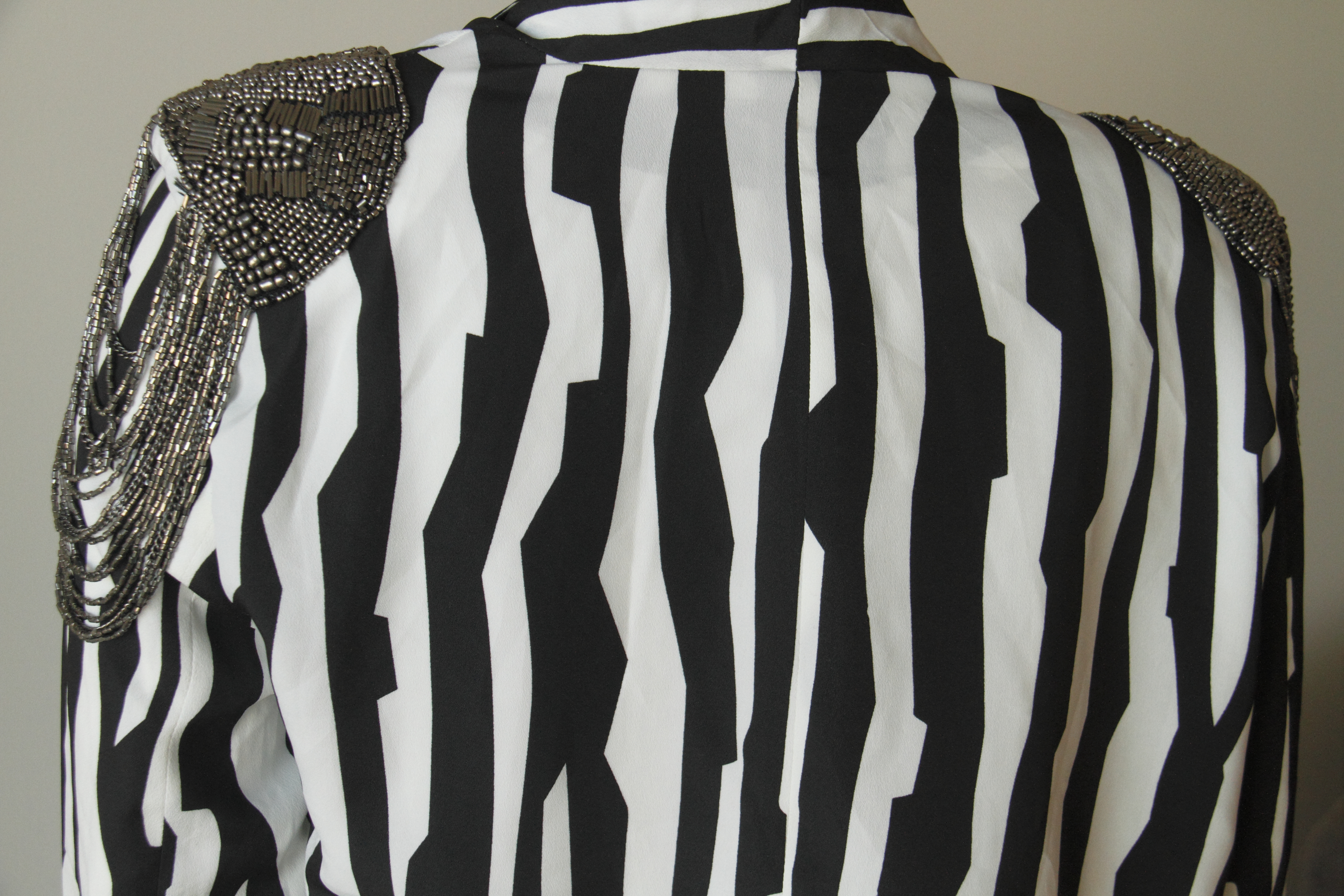 My 2nd gift is the Sade Black/white Pinch of Panache jacket! Let’s see…what can you NOT love about this jacket. From the bold black and white stripes, gorgeous drapery to the embellished shoulders and padding! I’m drooling! This jacket is definitely a show stopper and something that you can keep in your wardrobe forever. It can be worn dressed up or down. This jacket is now one of my favorite pieces in my closet. Thank you Siren London!