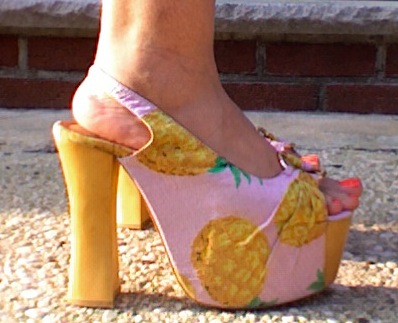 I just had to do a quick minipost about my special delivery today! Meet the newest edition to my Jeffrey Campbell shoe collection…The Ringling in pineapple print! I’m really excited about these! They’re very comfortable and I LOVE pineapples!