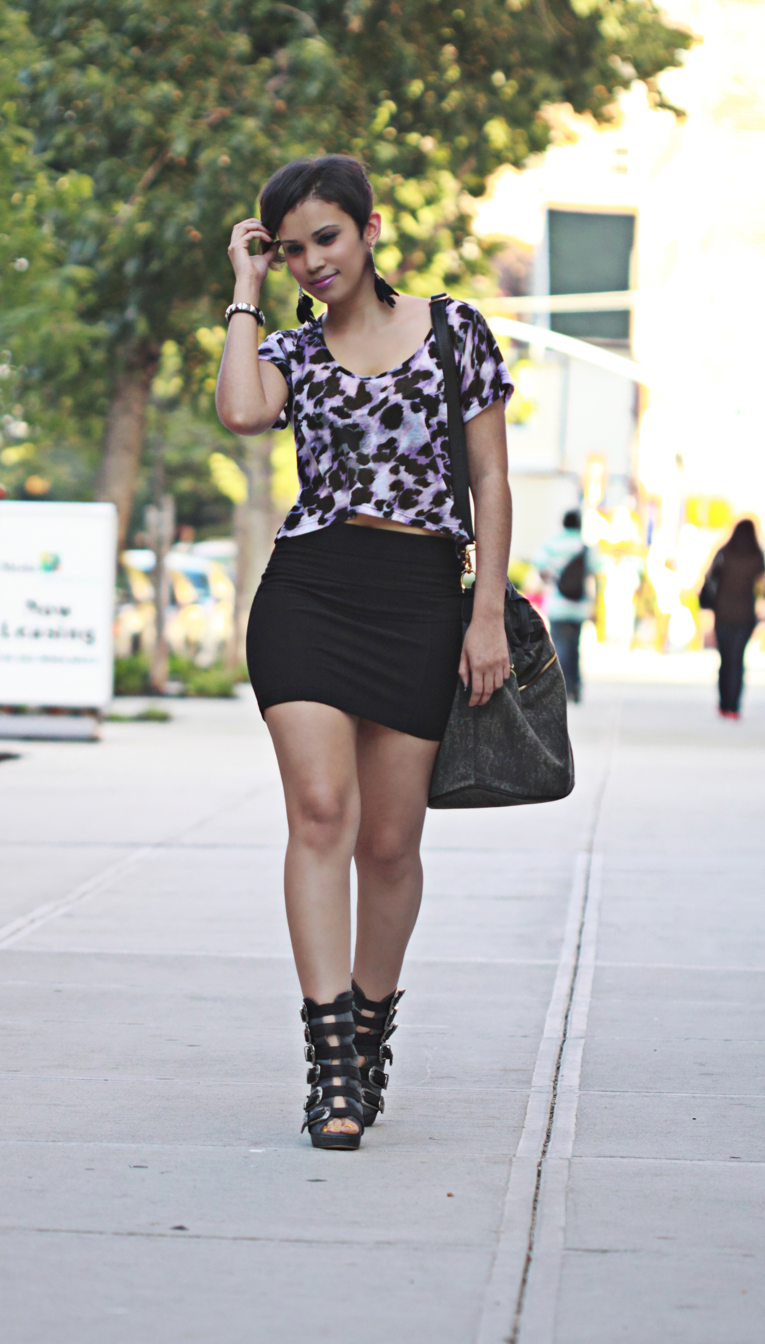 This is a quick mini post of my outfit today. I wore a leopard crop top by Mink Pink, bandage mini skirt by Bar III, earrings from Wet Seal and K-genius shoes and bag by Jeffrey Campbell. I hope everyone is having a good weekend! Today I spent time with family and the bf. I’ve been busy getting the store up and running so you can finally shop my closet!!! Look for the grand opening soon 🙂 Whoo hooo