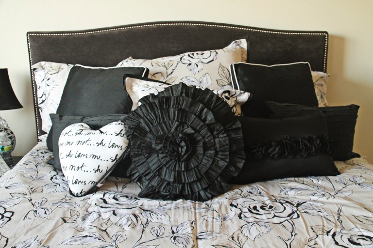 I changed the bedding for my bedroom and I’m so excited about it that I had to share it with all of you! I’m in love with the rose print and pillows. All the bedding and pillows are from Cynthia Rowley’s Vintage Rose collection from Marshalls! I still kept with the black and cream color. This is what my bedding look like before. Which do you like better? 🙂 What are the colors of your bedroom?