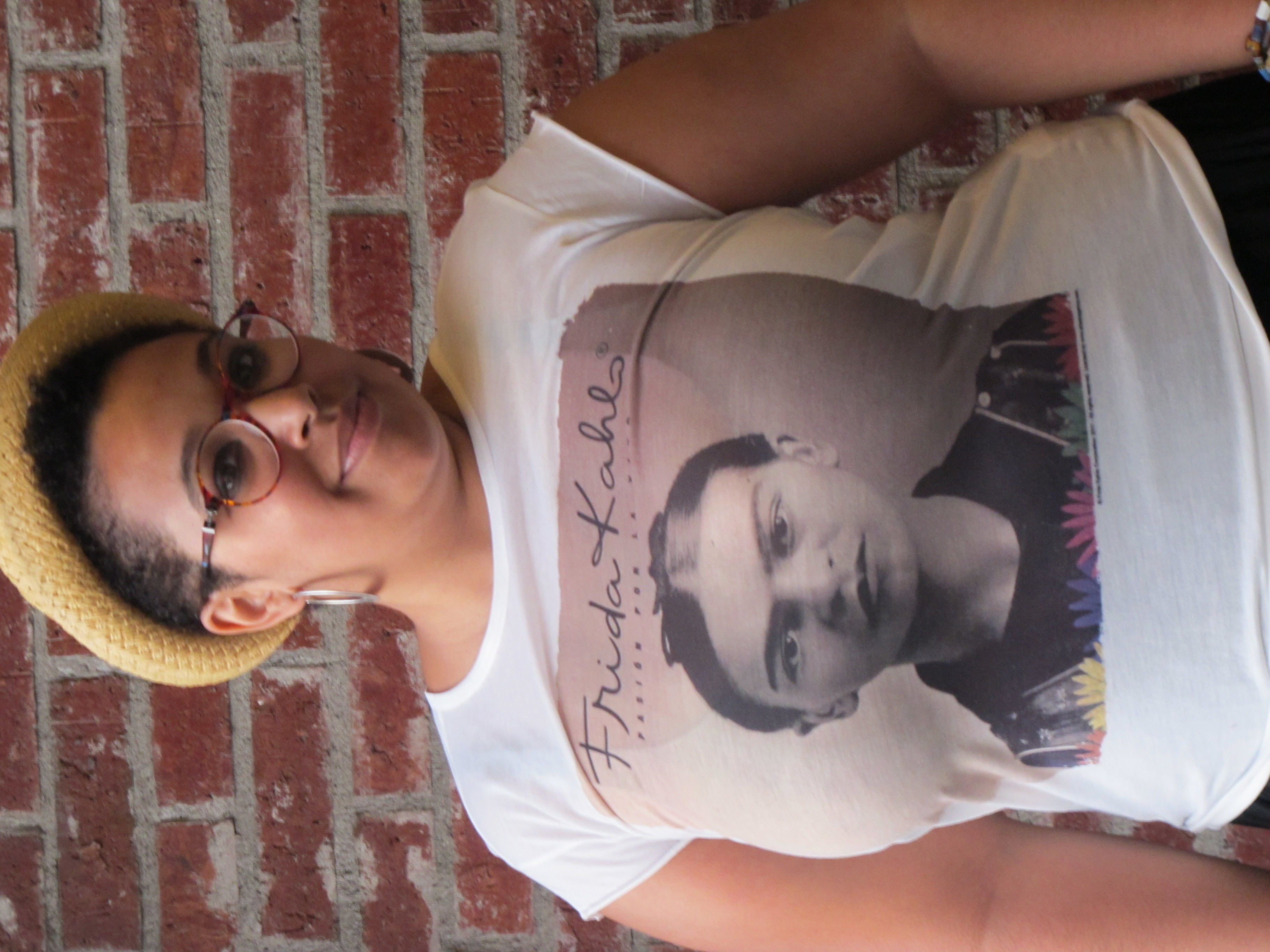 My sis wore a Frida Kahlo tee, really cool hat from LF and long maxi skirt