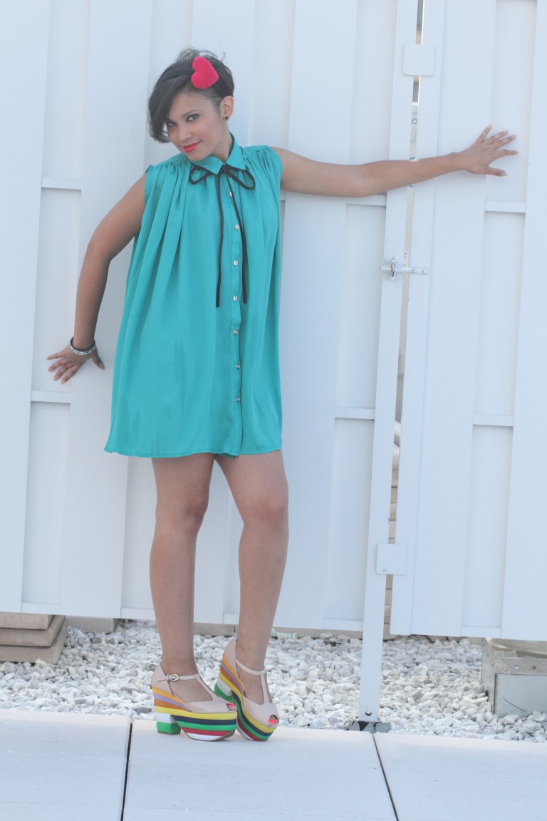 This is the 5th and 6th looks for Siren London’s “Seven Day Siren Challenge“! In both looks I’m wearing the Mojito Day Dress from Siren London along with the Dean Biker Jacket! I’m a big fan of the color and the movement of the dress! The leather neck tie is perfect for my cropped hair! It can be worn as a dress (5th outfit) or as a top ( 6th outfit). The Dean Jacket is great for the Fall weather and the fabric’s handfeel is so soft 🙂 The multicolor two layer collar (that’s a tongue twister hehe) is a unique touch. It really makes this biker jacket standout from the rest! Everywhere I’ve worn this jacket I received many compliments! Thank you Siren!!!