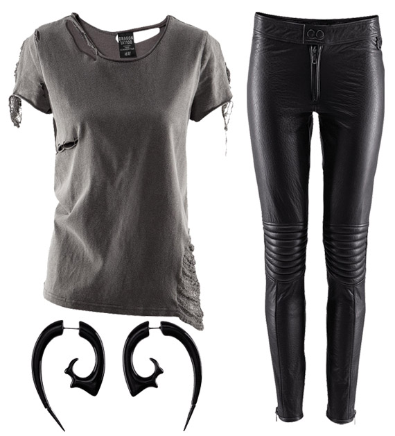 This new H&M Collection is designed by Trish Summerville, the costume designer for the Vogue-cover-worthy forthcoming film The Girl With the Dragon Tattoo. Summerville designed this collection based on the movie/book character Lisbeth Salander. “Salander (played by Rooney Mara) is weird-looking, unwashed, and always on the run from enemies who she subjects to physical torture, the retailer had to put some work into making her wardrobe “stylishly gritty” and “feminine-feeling” instead of just grimy and unattractive”- WWD via NYMAG.