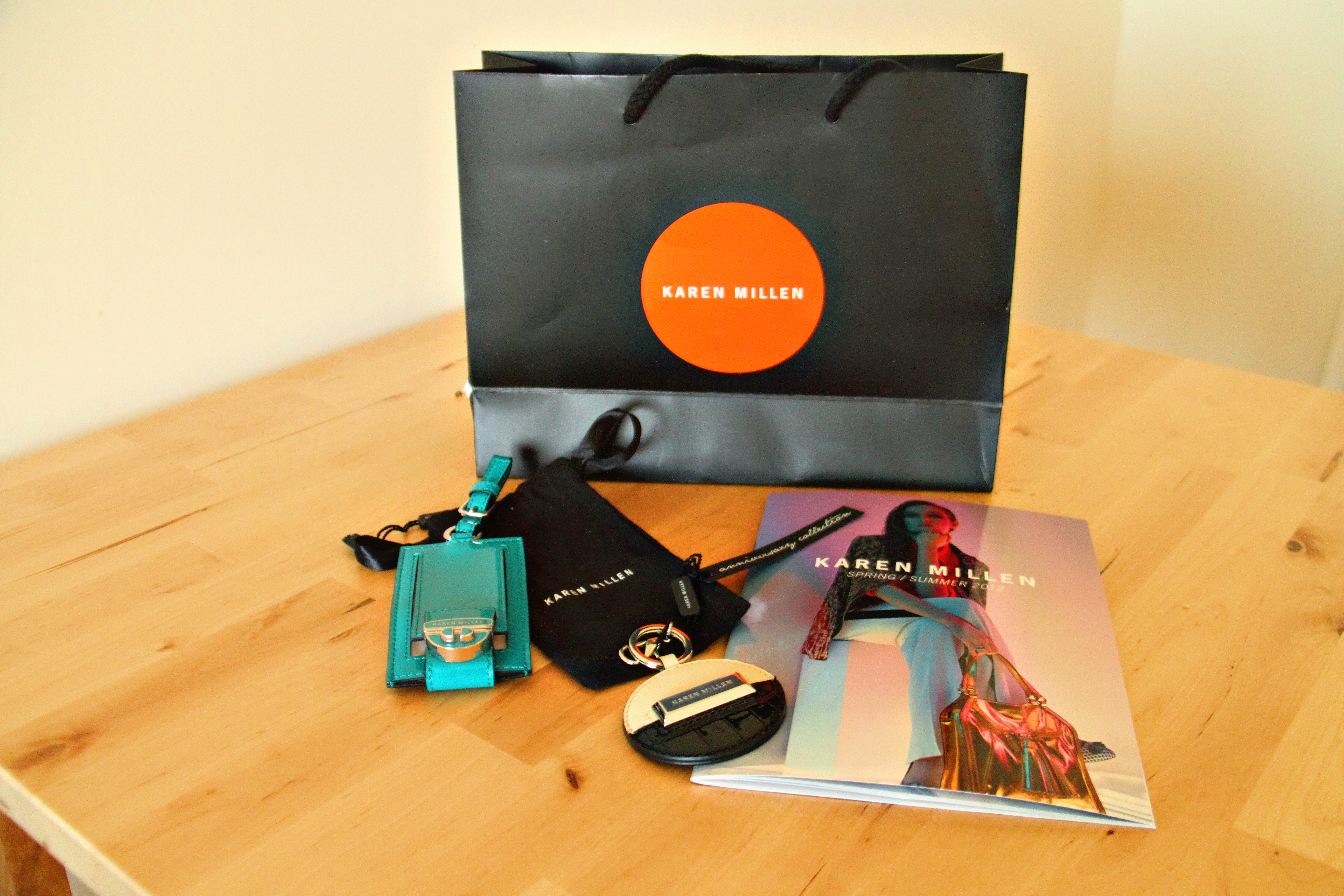 I left the boutique with a few treats! They surprised me with my very own Karen Millen luggage tag and key chain…