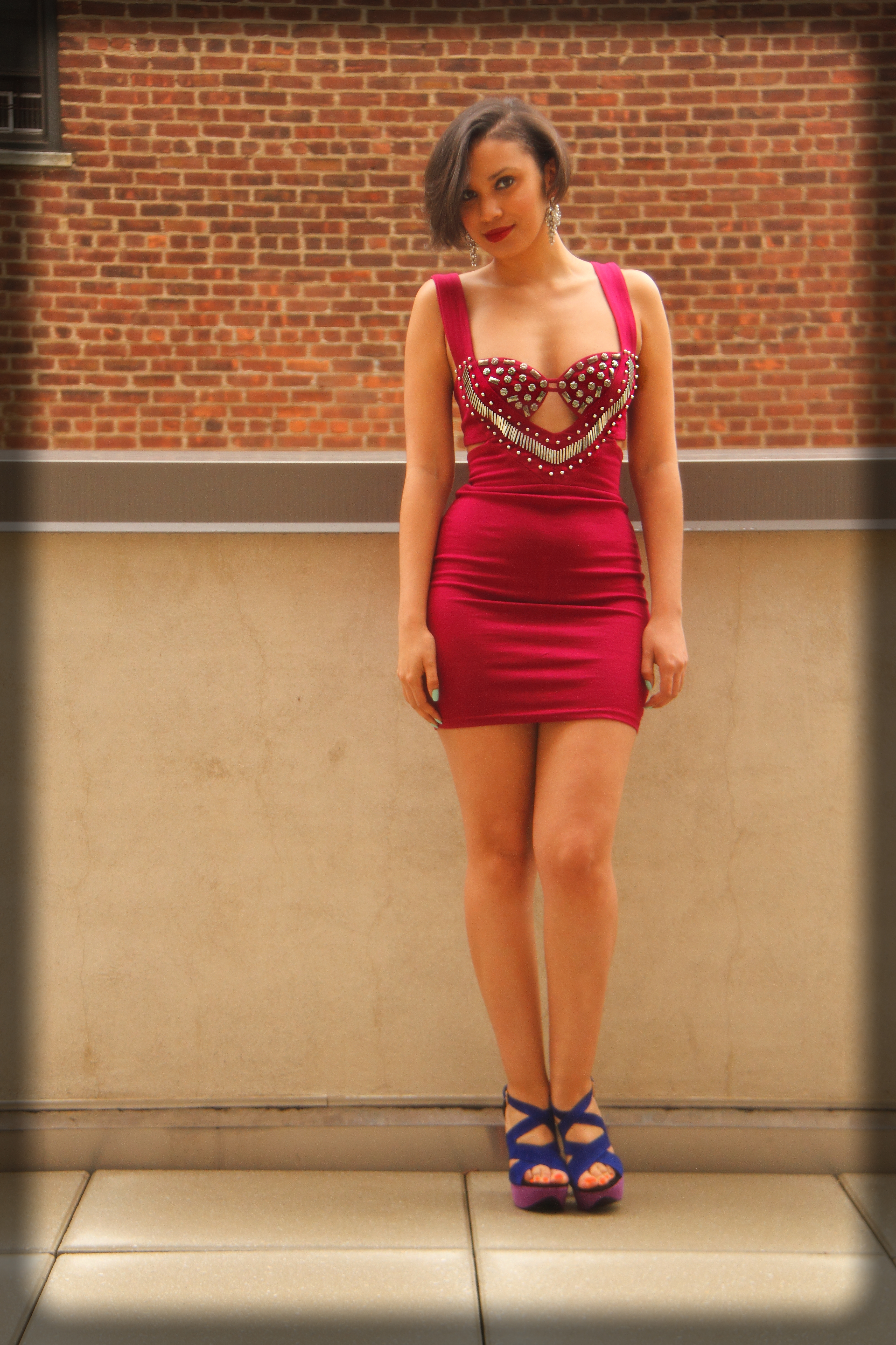In this outfit post I’m strutting in the Precious Metal dress by Reverse in the berry colorway (I love this dress so much that I also have it in black!!!). It has metallic silver details along the bust and a exposed zipper in the back with sassy cut outs. I can’t wait until it gets warmer so that I can actually wear it without freezing my toosh! You’ll definitely will be seeing more outfit posts wearing Reverse!!!