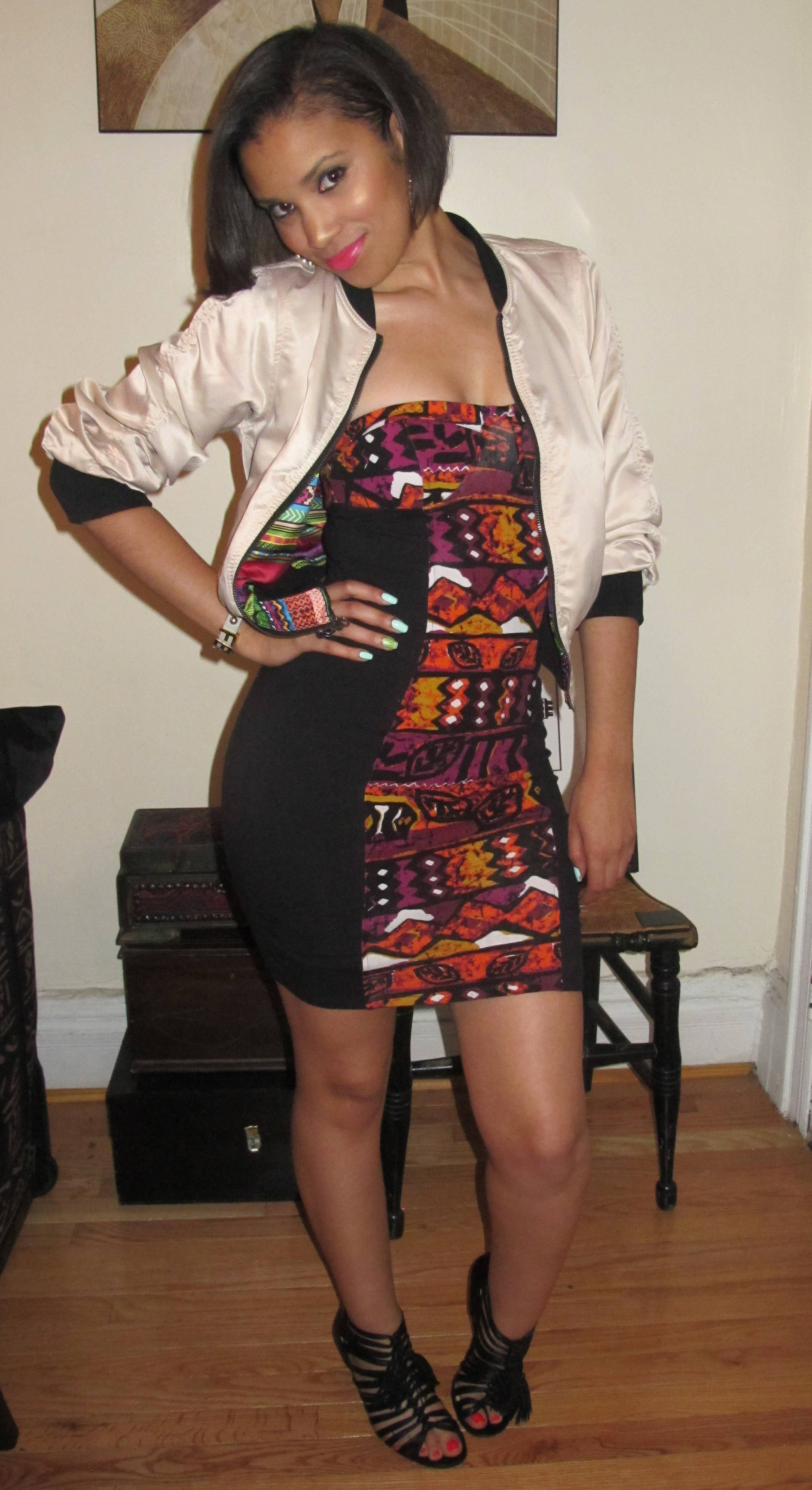 I hope everyone is having a great weekend. Sorry I’ve been MIA for a bit. I’ve just been enjoying my Summer and I haven’t had much time to take full outfit pictures with my photographer. I promise to get back into the swing of things in the next week. I have many new things to post about but for now I’m starting with my outfit post of the weekend! This weekend I went out dancing at the Q-tip party. I had a lot of fun with friends! Our feet hurt terribly by the end of the night but I guess that means it was a dabomb.com parrrrty! I didn’t have much time to take professional shots of my outfit but I did manage to snap a few pics with my digi cam. I wore a sweetheart neckline body con dress by Bar 3 for Macy’s, reversible jacket by H&M for FAA and sandals by Dolce Vita. I hope you like them! Stay tuned…xo