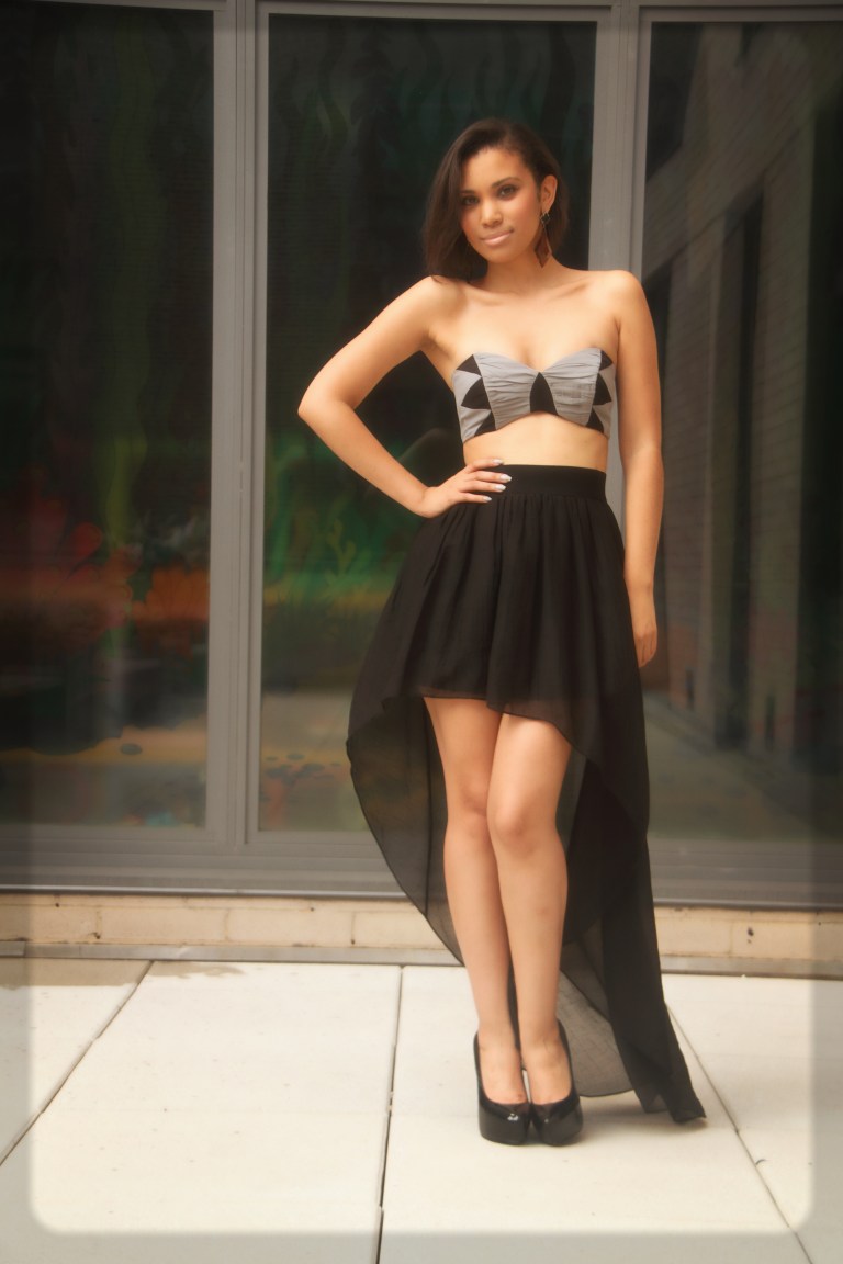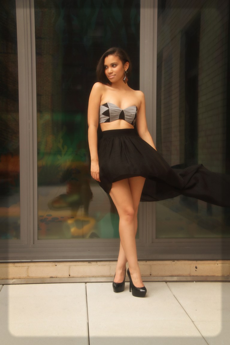 I’m loving this geometric bandeau top by BCBGeneration! I plan on living in it for the rest of the Summer. I’ll style it with shorts, a mini skirt and even jeans. In this post I’m wearing an asymmetrical skirt also by BCBGeneration (find a similar one here) and earrings from All Saints. I feel so sultry in this outfit. So, what do you think of my geometry!? 😉