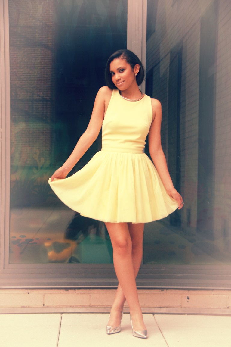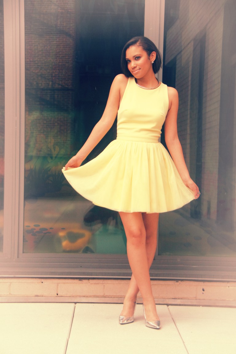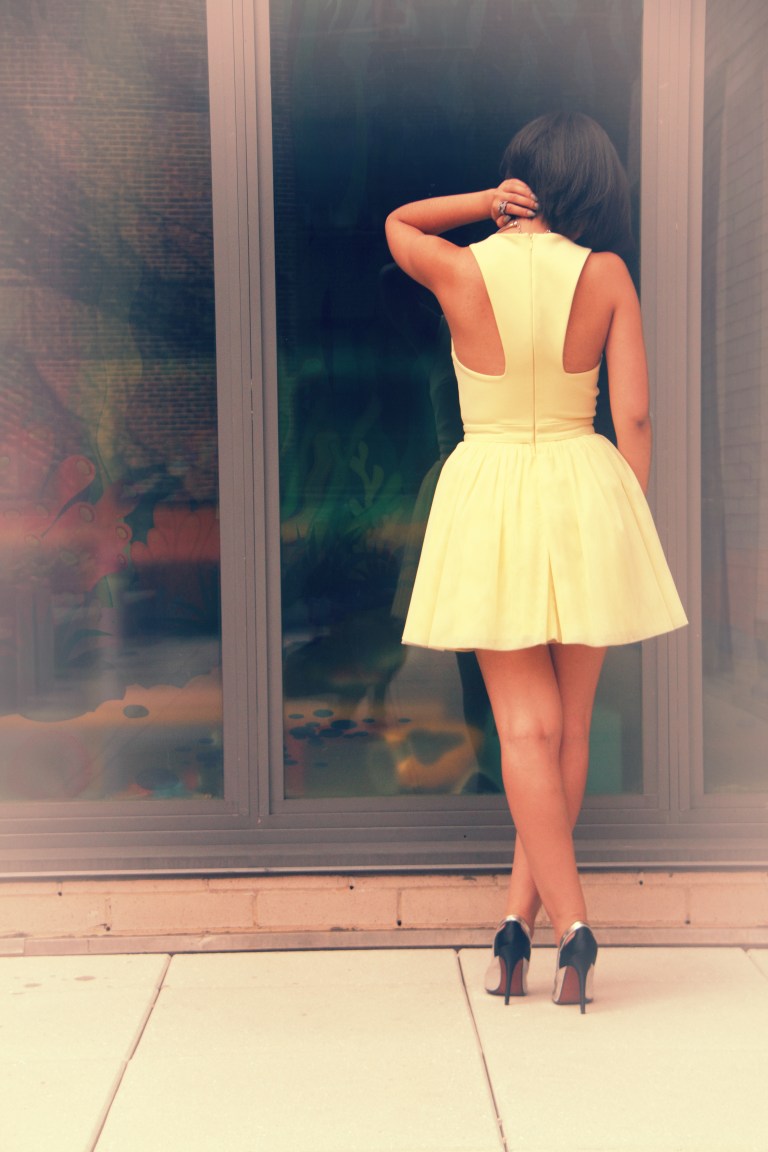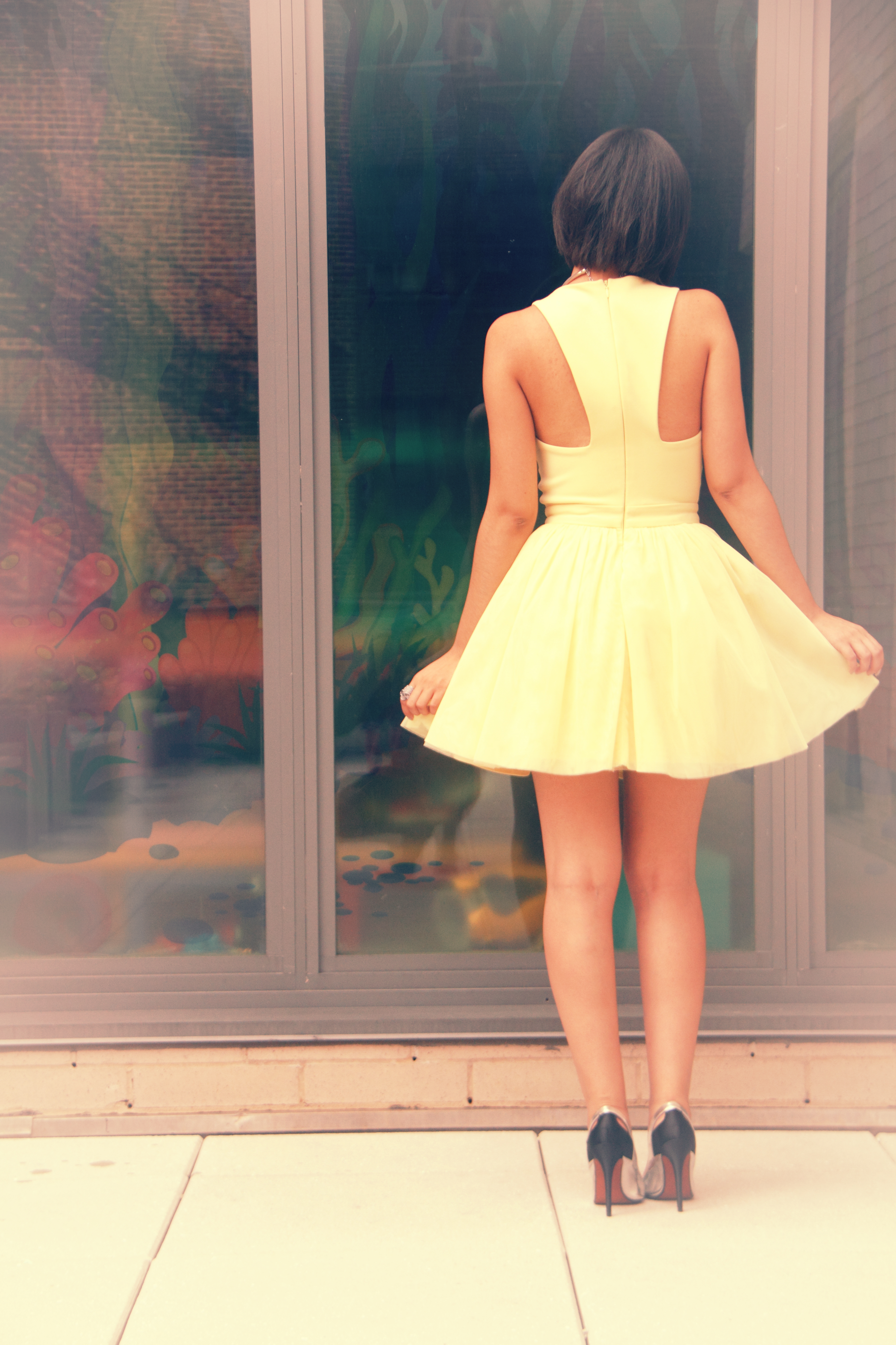 Ahhhhh, this is one of my favorite dresses right now! The lemon yellow color is delectable and I love the cut out back! I enjoy getting dressed up in pretty dresses! Do you!?!
