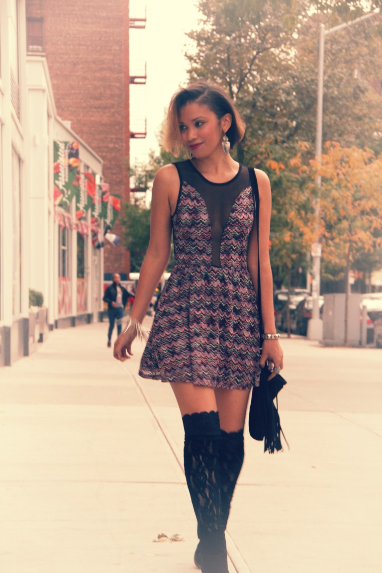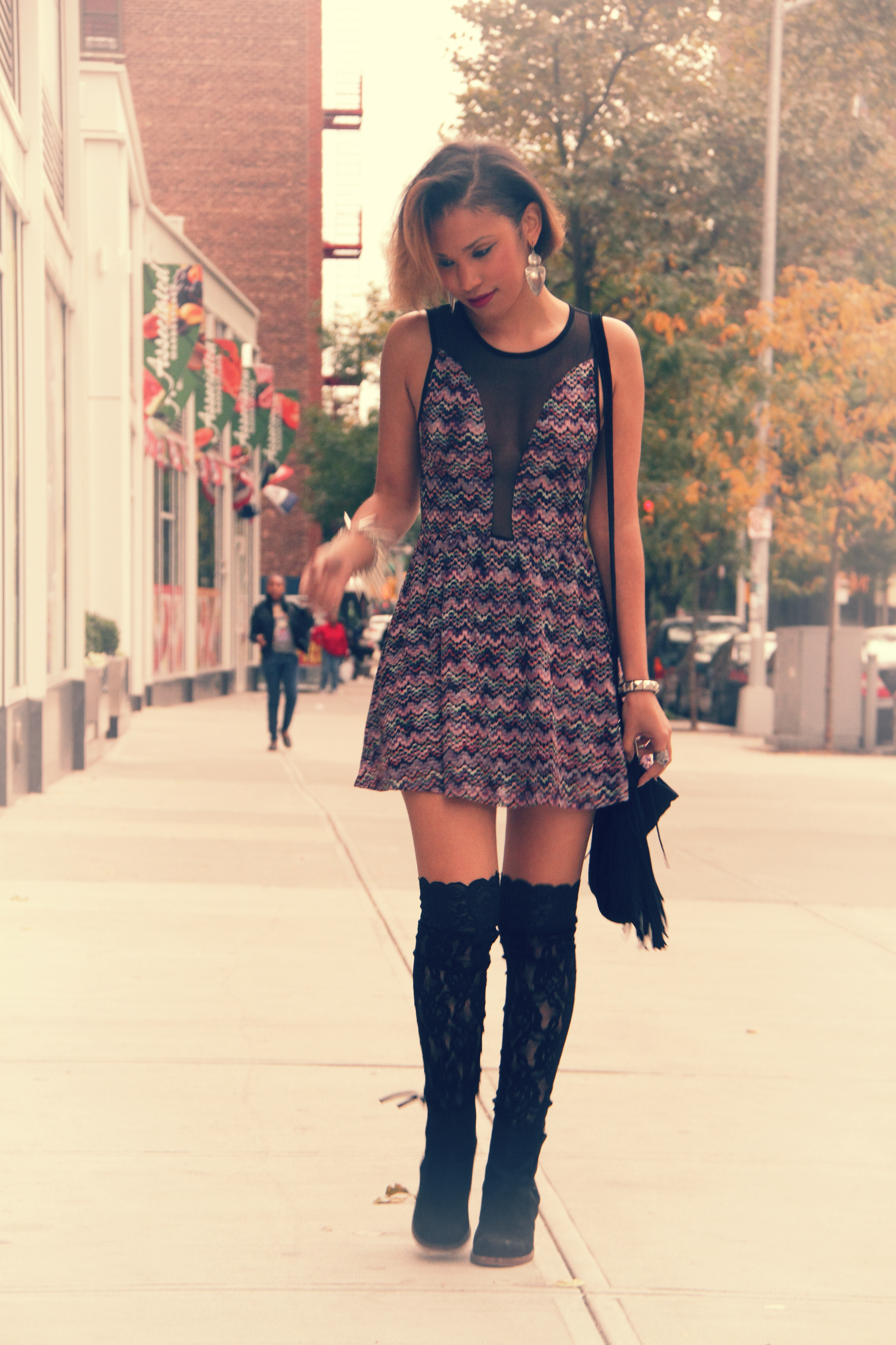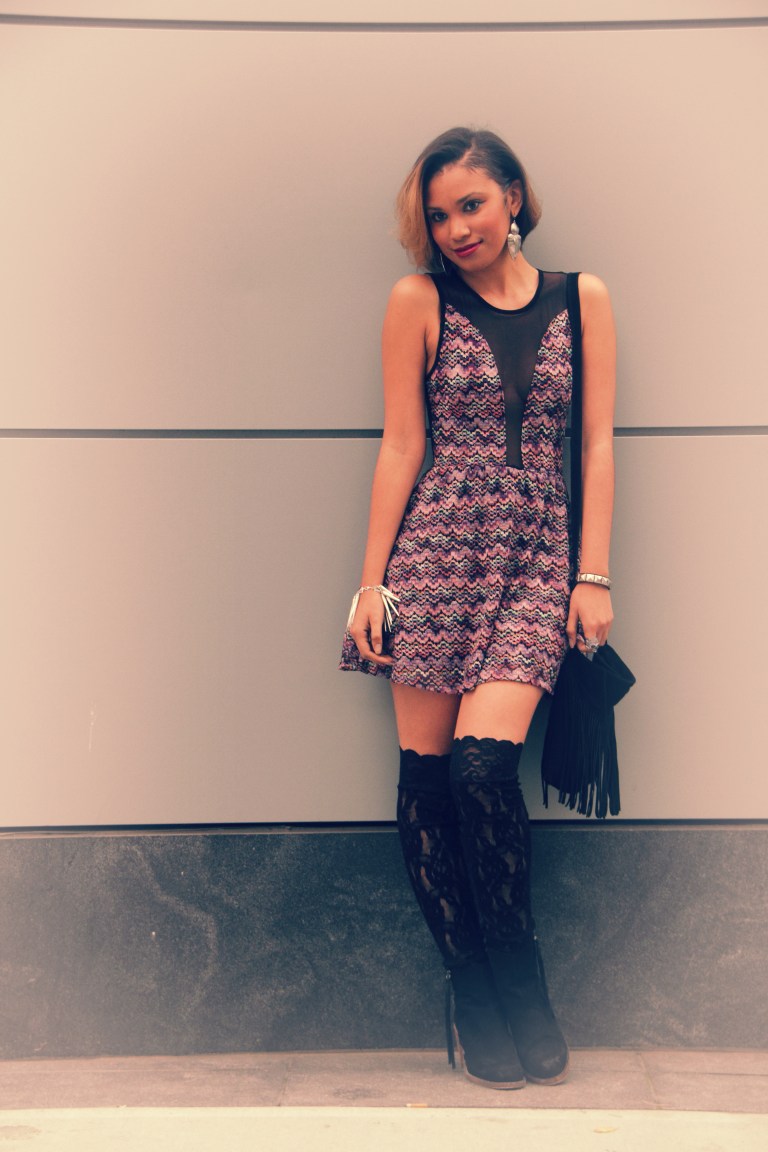 In this outfit post I’m wearing the zig zag “Lulu” dress by For Love & Lemons! I was lucky enough to grab this cutie for only $34 during Nasty Gal’s 30% off dress sale last week! I’m also wearing lace thigh highs for only $7.20!!! Can you say BAHGAINSSSS!!! š I hope everyone had a great week! CHEERS TO THE WEEKEND! xo