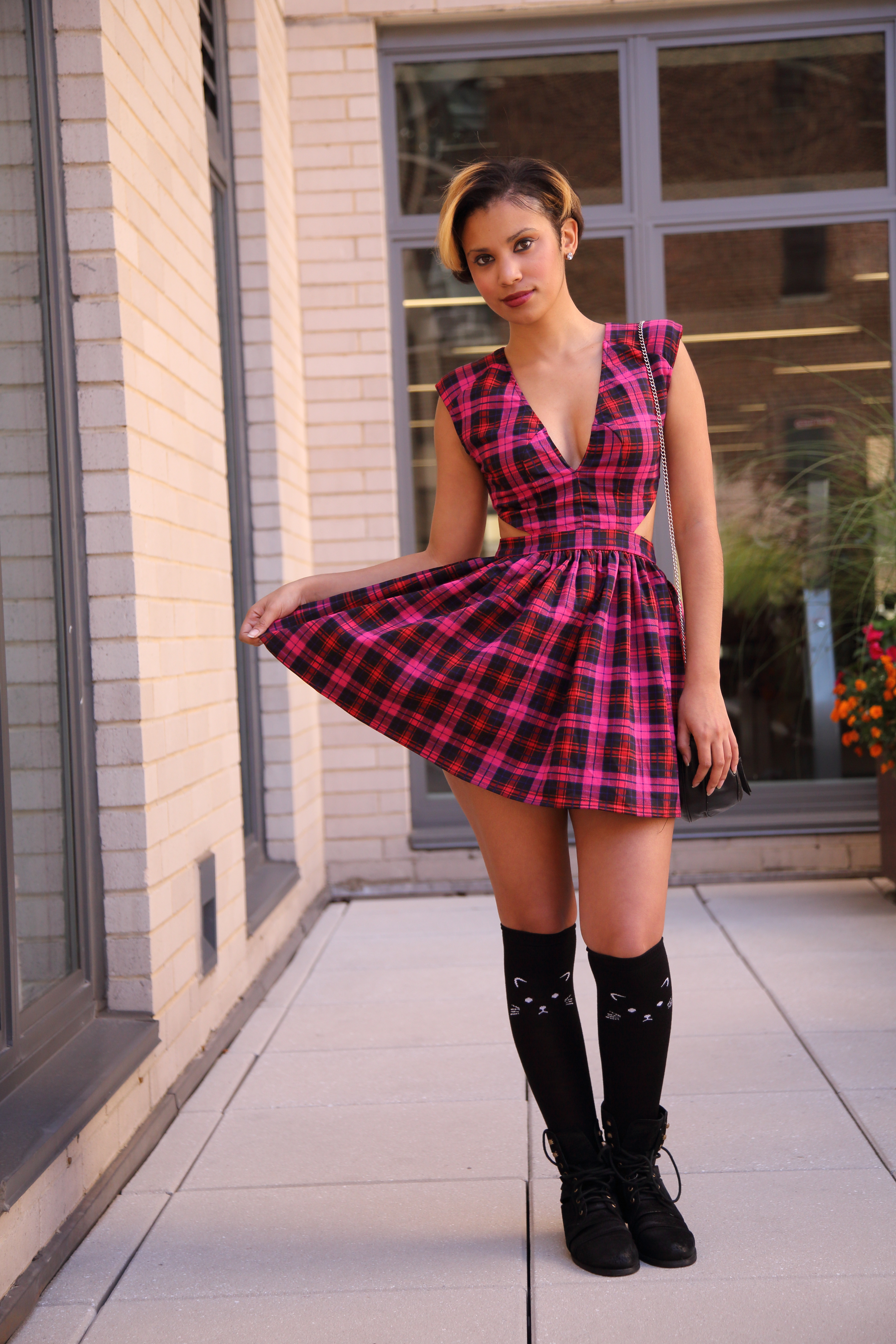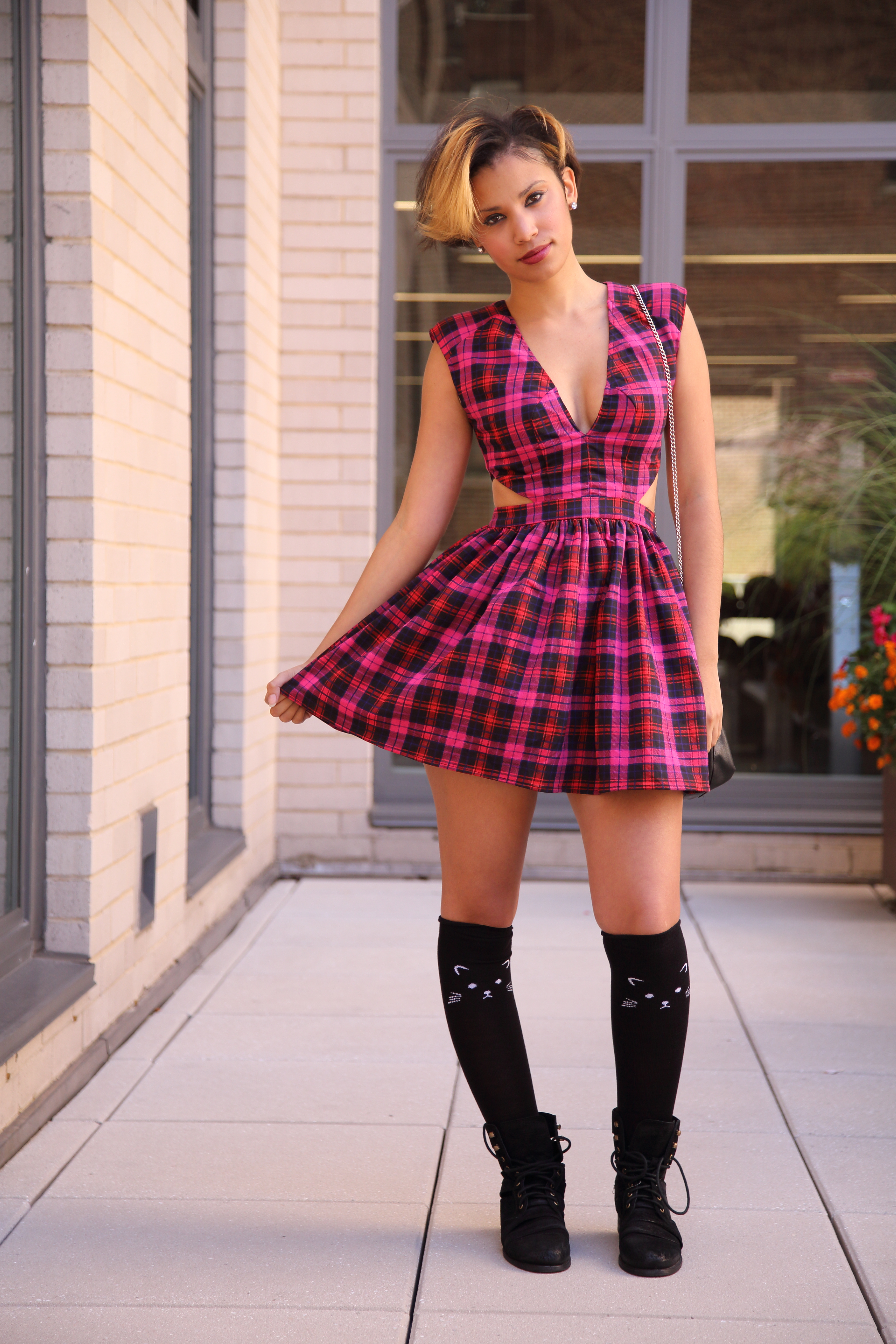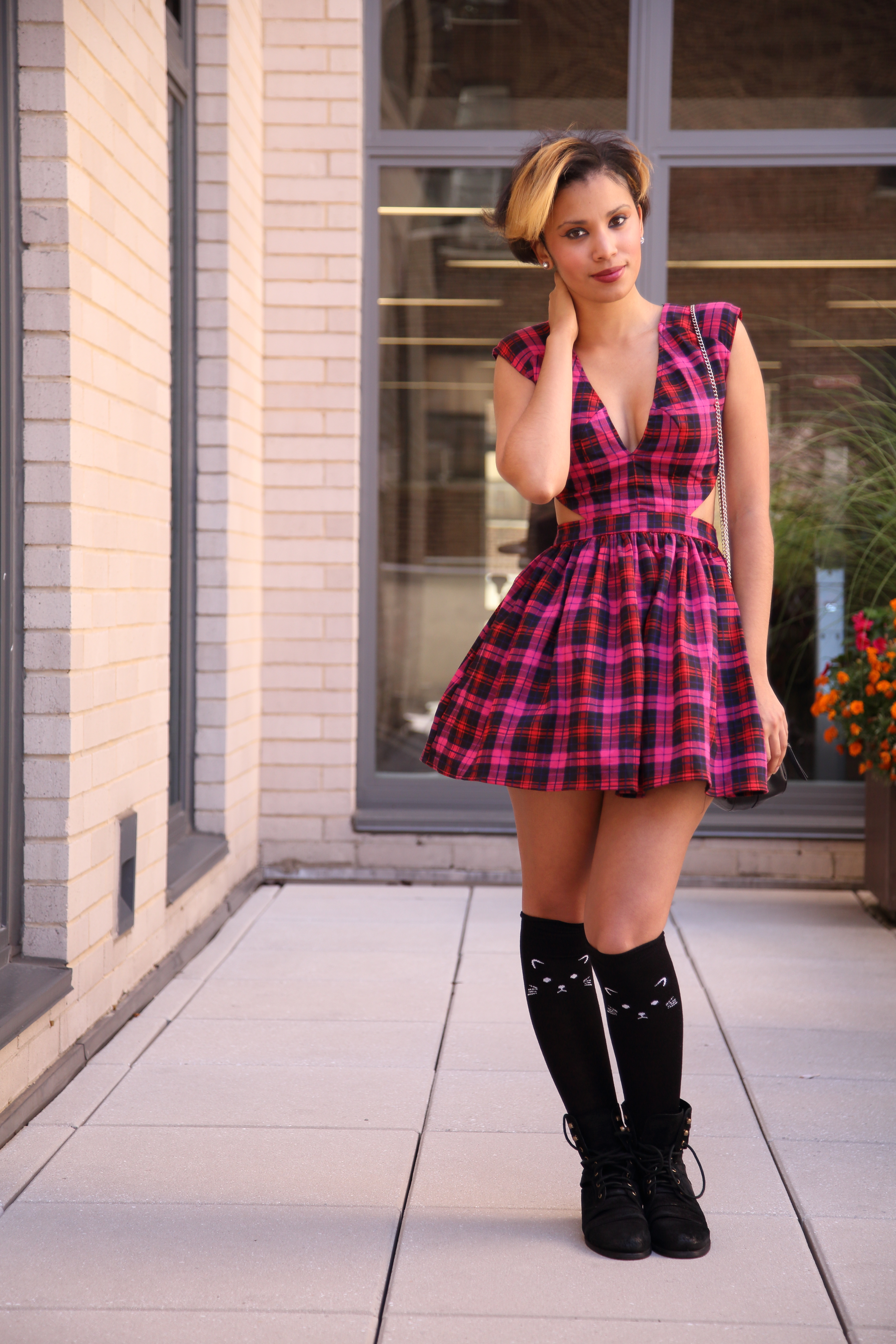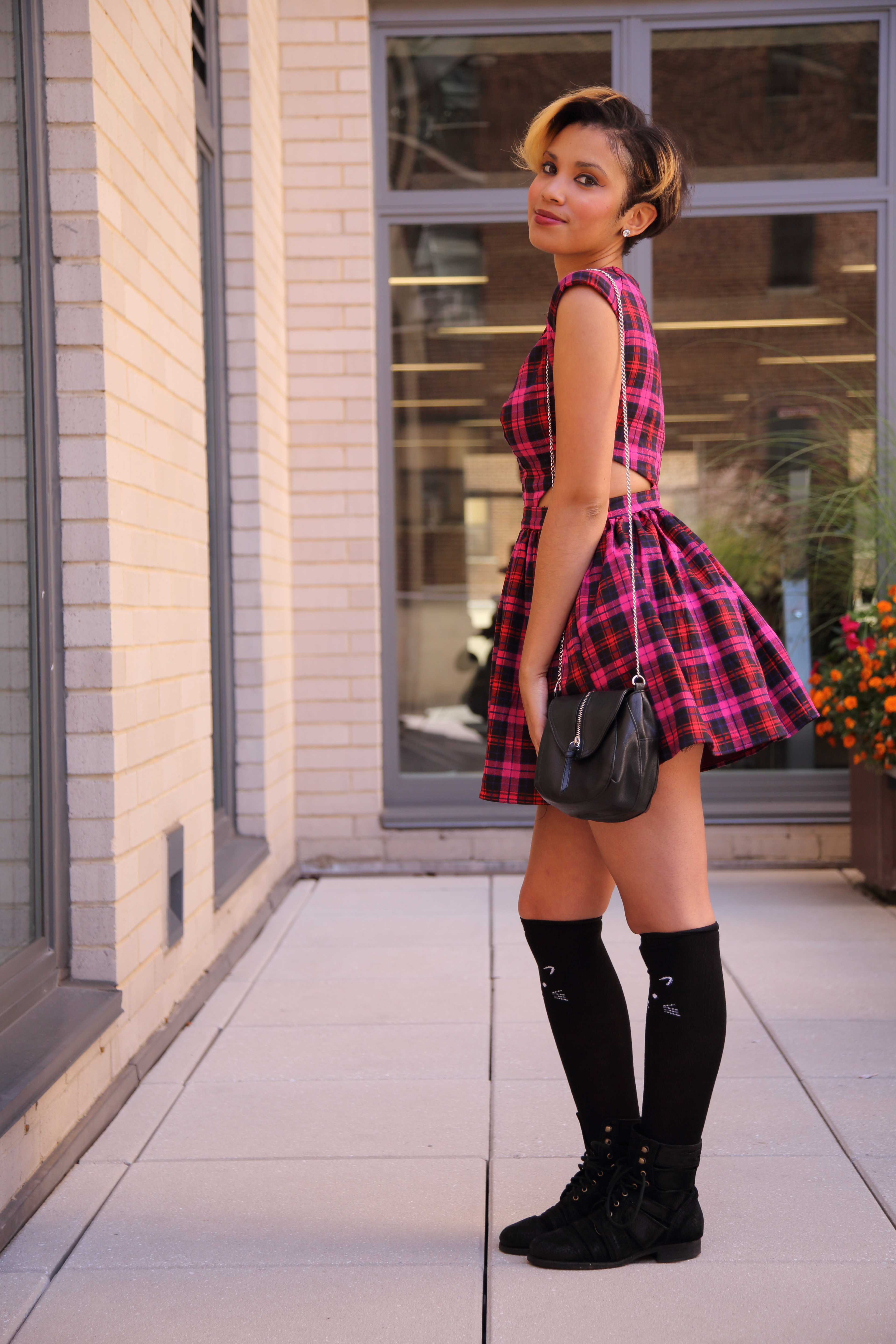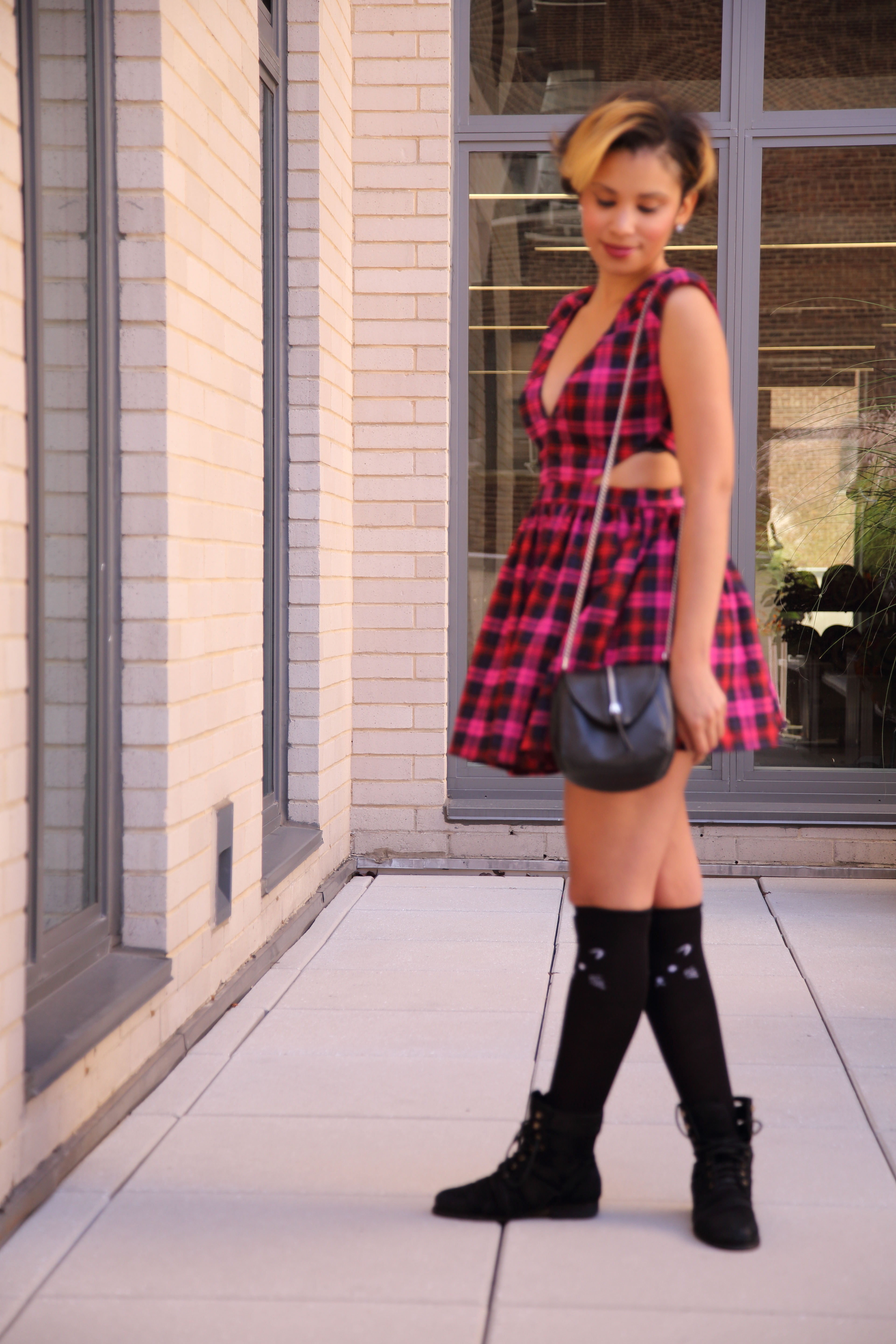 Outfit deets: dress, socks from F21, boots by Jeffrey Campbell and bag by Material Girl for Macy’s