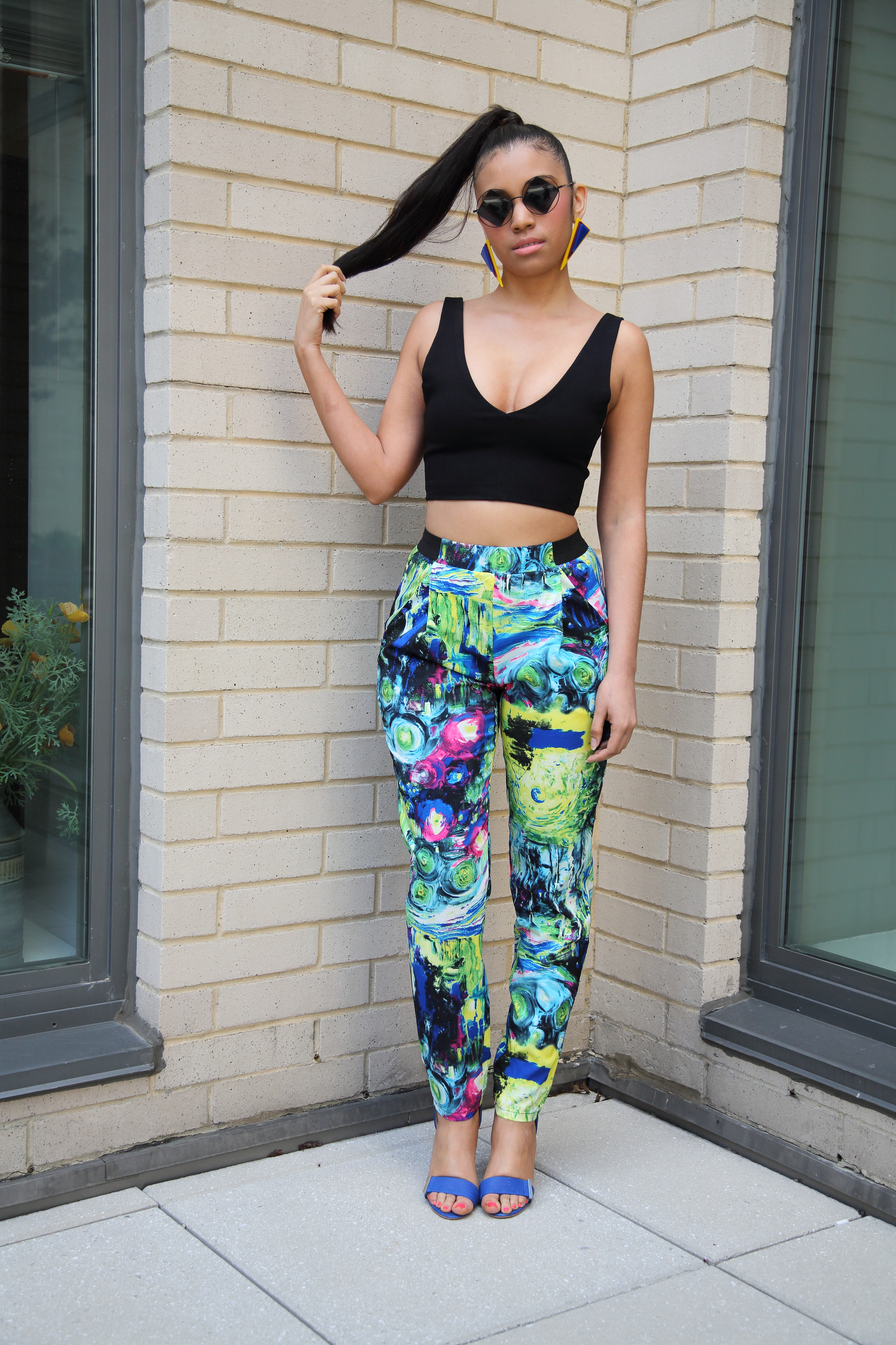 I hope everyone had a great weekend! I’m spent the weekend wedding celebrating for my big sister’s BIG day and this is what I wore to the bachelorette party. The outfit is under $60 at Century 21 stores. I fell in love with these pants because they seem to be inspired by Vincent van Gogh’s “Starry Night” painting! LOVE! LOVE!