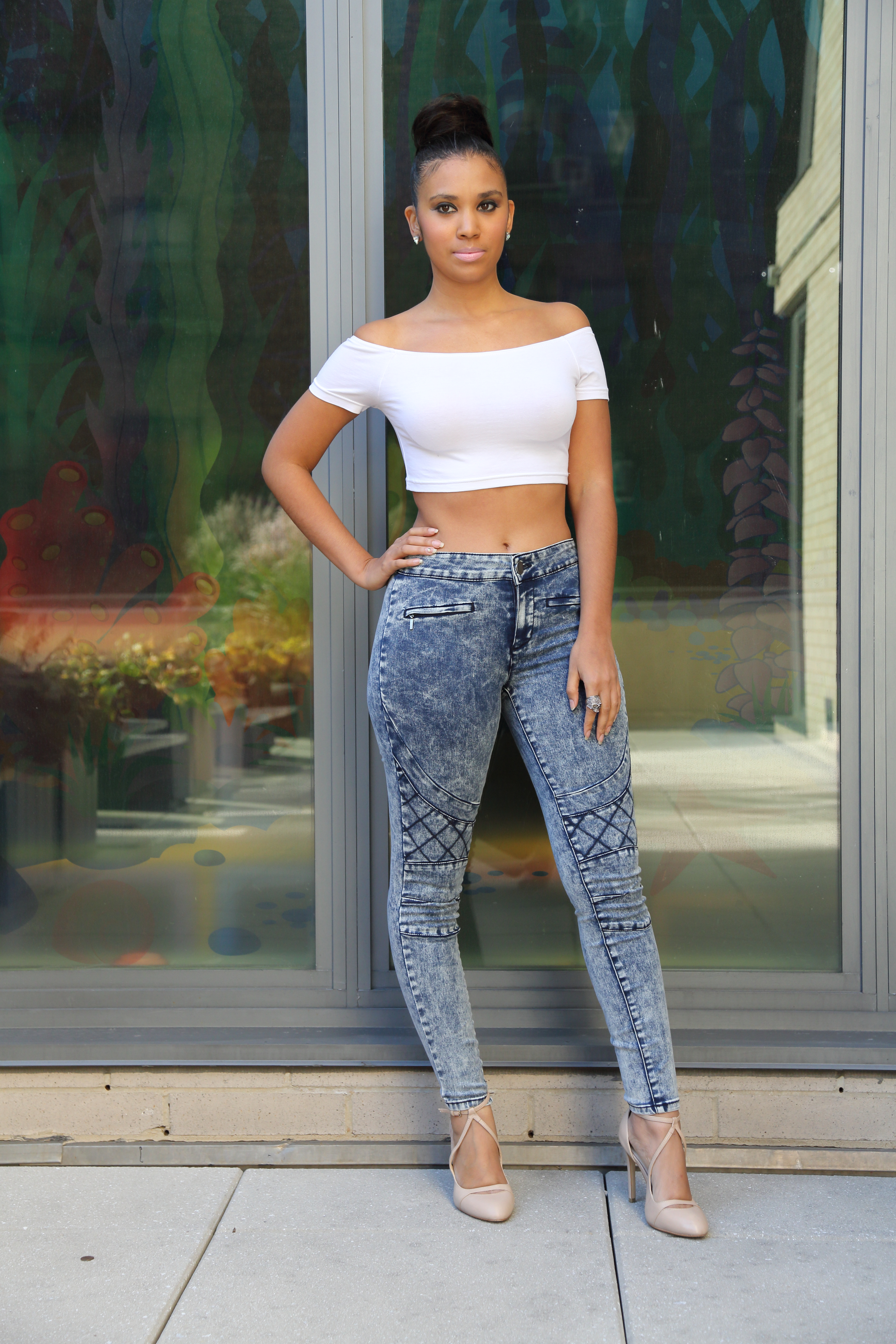 Nothing like a great pair of fitted jeans. 😉 These skinny moto jeans are from Bebe. This is my first time wearing Bebe jeans and I’m very pleased! They are are very comfortable. Throw on a crop top and heels for a hot date!